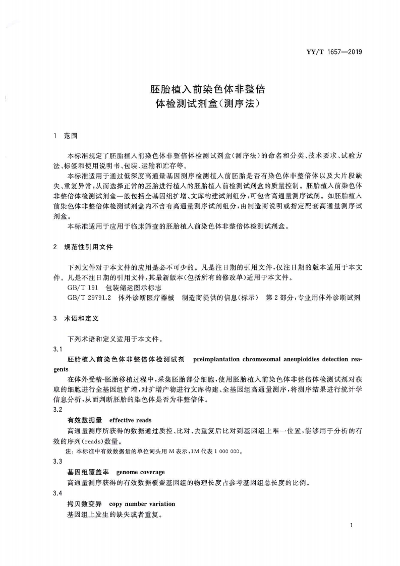 胚胎植入前染色体异倍体检测试剂套装(测序手段)Preimplantationchromosomalheteroploidiesdetectionreagentsets(Sequencing)348072@abc6天前发布关注私信2.64MB14页050胚胎植入前染色体异倍体检测试剂套装(测序手段)Preimplantationchromosomalheteroploidiesdetectionreagentsets(Sequencing)此内容为付费资源,请付费后查看¥13¥19黄金会员免费钻石会员免费立即购买您当前未登录!建议登陆后购买,可保存购买订单付费资源 第1页 / 共14页 第2页 / 共14页 第3页 / 共14页 第4页 / 共14页 第5页 / 共14页 试读已结束,还剩9页,您可下载完整版后进行离线阅读 THE END标准规范 文本预览 ICS11.040.30c30YY4中华人民共和国医药行业标准YY/T1657-2019胚胎植入前染色体非整倍体检测试剂盒(测序法)Preimplantation chromosomal aneuploidies detection kits (Sequencing)2019-07-24发布2020-08-01实施国家药品监督管理局发布做器宜有物 查看更多 收起部分 喜欢就支持一下吧收藏