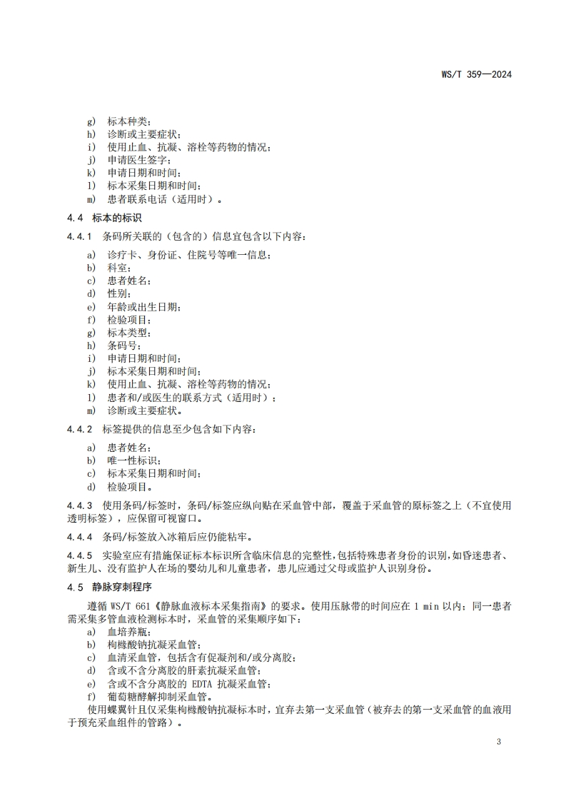 血栓与止血检验常用项目的标本采集与处理Collectionandprocessingofspecimensofroutineanalytesinthrombosisandhemostasis_2348072@abc7天前发布关注私信0.40MB8页042血栓与止血检验常用项目的标本采集与处理Collectionandprocessingofspecimensofroutineanalytesinthrombosisandhemostasis_2此内容为付费资源,请付费后查看¥13¥19黄金会员免费钻石会员免费立即购买您当前未登录!建议登陆后购买,可保存购买订单付费资源 第1页 / 共8页 第2页 / 共8页 第3页 / 共8页 第4页 / 共8页 第5页 / 共8页 试读已结束,还剩3页,您可下载完整版后进行离线阅读 THE END标准规范 文本预览 ICS11.020CCS C50WS中华人民共和国卫生行业标准WS/T359-2024代替S/T359一2011血栓与止血检验常用项目的标本采集与处理Collection and processing of specimens of routine analytes in thrombosis andhemostasis2024-05-09发布2024-11-01实施中华人民共和国国家卫生健康委员会发布 查看更多 收起部分 喜欢就支持一下吧收藏