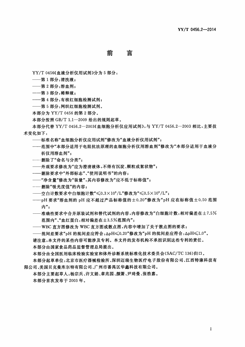 血液分析仪用试剂第2部分_溶血剂Reagentsforhematologyanalyzer-Part2_Hemolysin348072@abc8天前发布关注私信1.96MB8页043血液分析仪用试剂第2部分_溶血剂Reagentsforhematologyanalyzer-Part2_Hemolysin此内容为付费资源,请付费后查看¥13¥19黄金会员免费钻石会员免费立即购买您当前未登录!建议登陆后购买,可保存购买订单付费资源 第1页 / 共8页 第2页 / 共8页 第3页 / 共8页 第4页 / 共8页 第5页 / 共8页 试读已结束,还剩3页,您可下载完整版后进行离线阅读 THE END标准规范 文本预览 1CS11.100C44YY中华人民共和国医药行业标准YY/T0456.2-2014代替YY/T0456.2-2003血液分析仪用试剂第2部分:溶血剂Reagents for hematology analyzer-Part 2:Hemolysin2014-06-17发布2015-07-01实施国家食品药品监督管理总局发布 查看更多 收起部分 喜欢就支持一下吧收藏