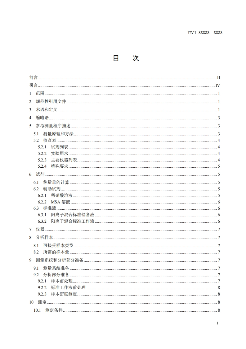 1CS11.100C44中华人民共和国医药行业标准YY/TXXXXX-XXXX血清电解质(钾钠钙镁)参考测量程序(离子色谱法)Reference Measurement Procedure for Determination of Electrolytes (Potassium,Sodium,Calcium and Magnesium)in Serum (Ion Chromatography)点击此处添加与国际标准一致性程度的标识(征求意见稿)(本稿完成日期:2017-7-13)XXXX-XX-XX发布XXXX-XX-XX实施国家食品药品监督管理总局发布