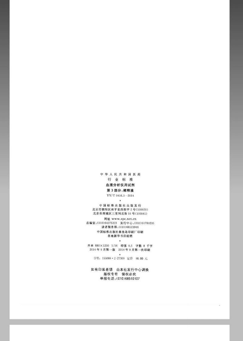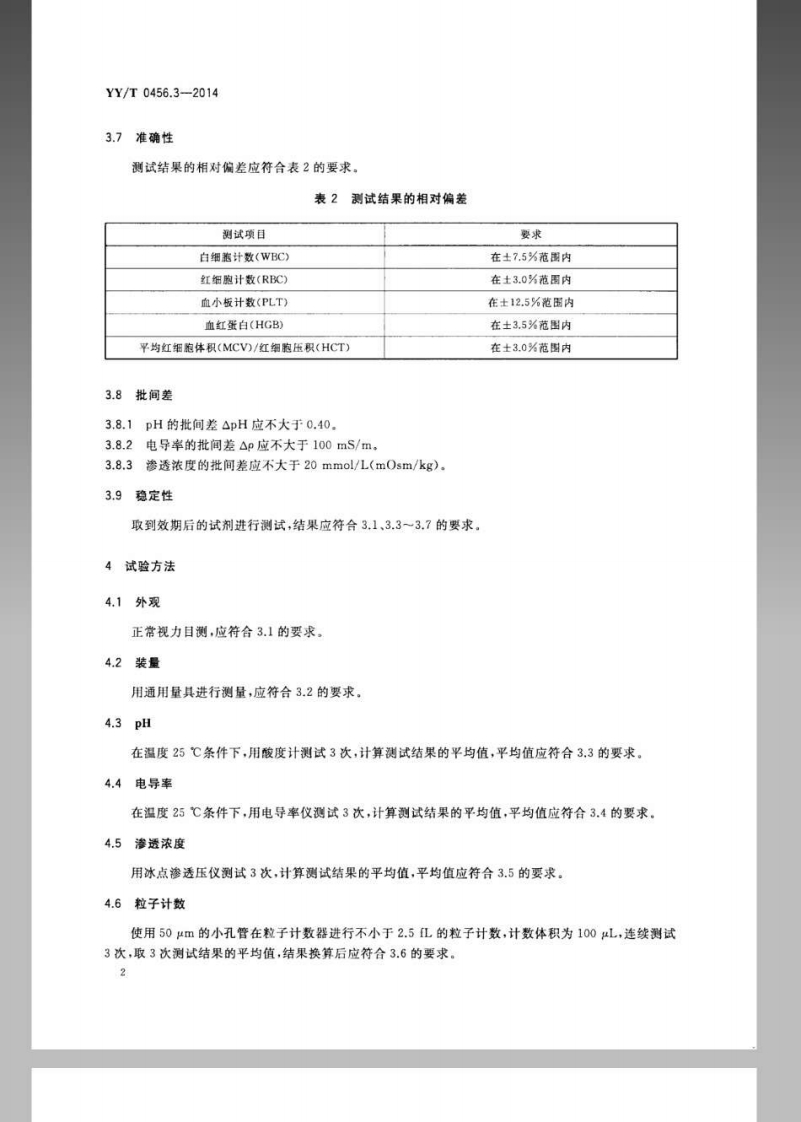 血细胞分析仪用试剂第3部分稀释剂348072@abc7天前发布关注私信0.45MB7页028血细胞分析仪用试剂第3部分稀释剂此内容为付费资源,请付费后查看¥13¥19黄金会员免费钻石会员免费立即购买您当前未登录!建议登陆后购买,可保存购买订单付费资源 第1页 / 共7页 第2页 / 共7页 第3页 / 共7页 第4页 / 共7页 第5页 / 共7页 试读已结束,还剩2页,您可下载完整版后进行离线阅读 THE END标准规范 文本预览 ICs11.100C44YY中华人民共和国医药行业标准YY/T0456.3-2014代替YY/T0456.3-2003血液分析仪用试剂第3部分:稀释液Reagents for hematology analyzer-Part 3:Diluent2014-06-17发布2015-07-01实施国家食品药品监督管理总局发布 查看更多 收起部分 喜欢就支持一下吧收藏