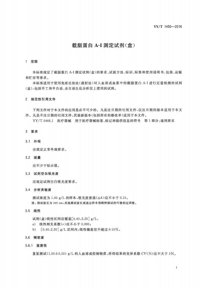 载脂蛋白A1检测试剂(盒)载脂蛋白A1测试试剂348072@abc7天前发布关注私信1.60MB10页029载脂蛋白A1检测试剂(盒)载脂蛋白A1测试试剂此内容为付费资源,请付费后查看¥13¥19黄金会员免费钻石会员免费立即购买您当前未登录!建议登陆后购买,可保存购买订单付费资源 第1页 / 共10页 第2页 / 共10页 第3页 / 共10页 第4页 / 共10页 第5页 / 共10页 试读已结束,还剩5页,您可下载完整版后进行离线阅读 THE END标准规范 文本预览 41.1001345YY中华人民共和国医药行业标准YY/T1450-2016载脂蛋白A-I测定试剂(盒)Apolipoprotein A-I test reagent2016-01-26发布2017-01-01实施国家食品药品监督管理总局发布 查看更多 收起部分 喜欢就支持一下吧收藏