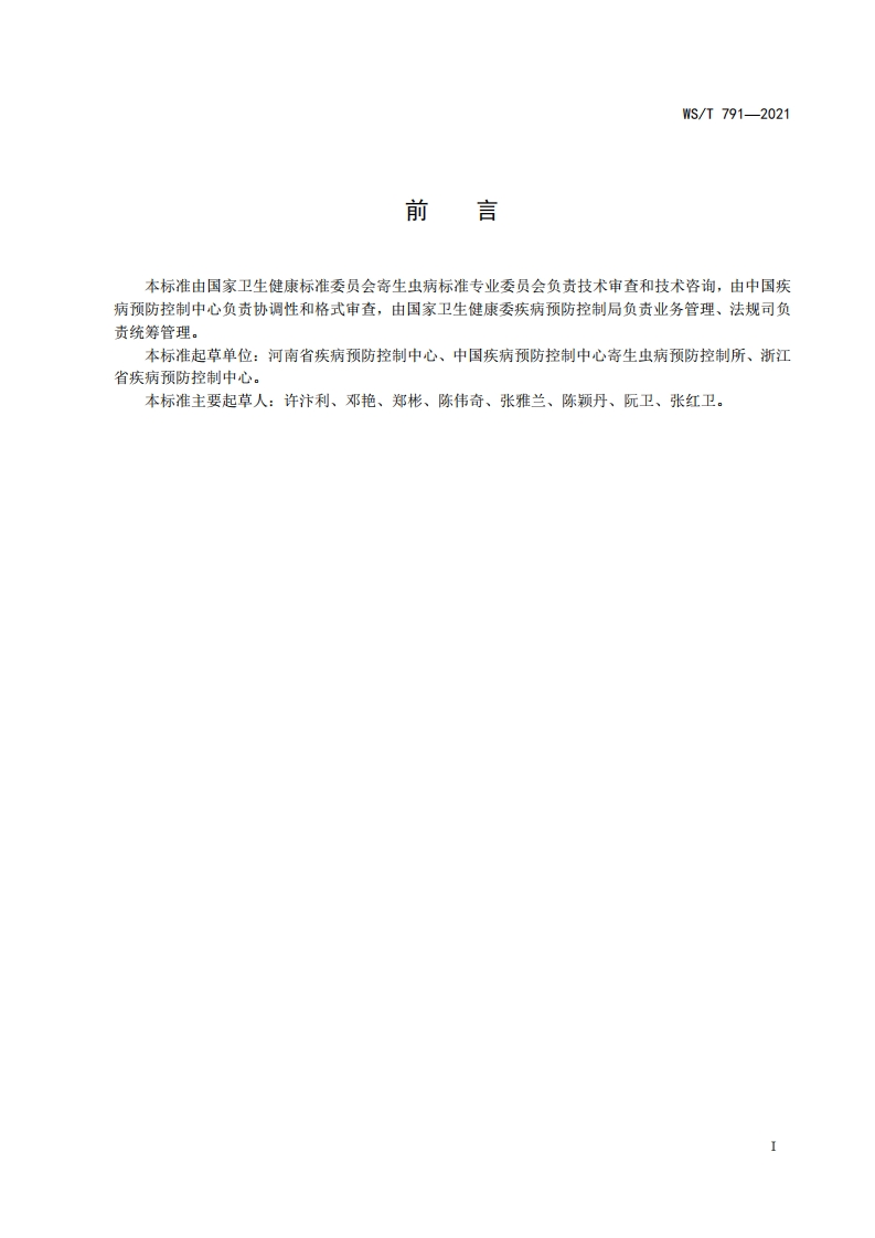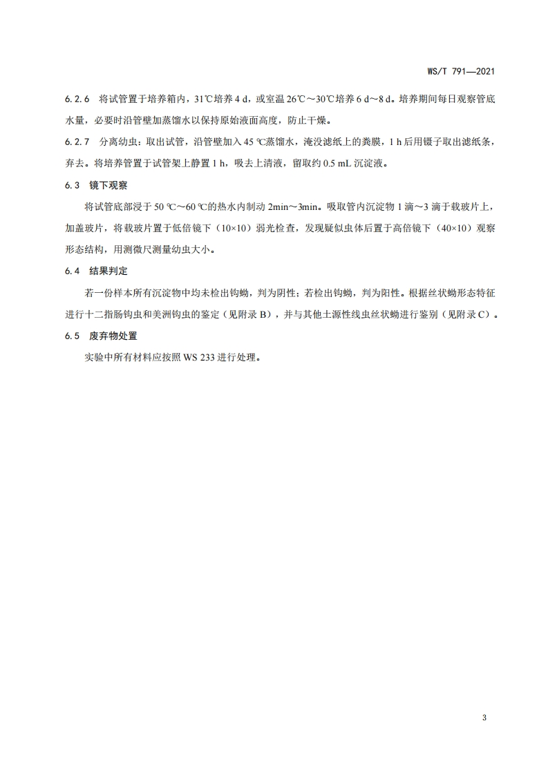 钩虫检测及虫种鉴定标准钩蚴培养法DetectionandidentificationstandardofhookwormHookwormlarvaecoproculturetechniques348072@abc6天前发布关注私信2.60MB11页033钩虫检测及虫种鉴定标准钩蚴培养法DetectionandidentificationstandardofhookwormHookwormlarvaecoproculturetechniques此内容为付费资源,请付费后查看¥13¥19黄金会员免费钻石会员免费立即购买您当前未登录!建议登陆后购买,可保存购买订单付费资源 第1页 / 共11页 第2页 / 共11页 第3页 / 共11页 第4页 / 共11页 第5页 / 共11页 试读已结束,还剩6页,您可下载完整版后进行离线阅读 THE END标准规范 文本预览 ICS11.020CCS C 61中华人民共和国卫生行业标准WS/T791-2021钩虫检测及虫种鉴定标准钩蚴培养法Detection and identification standard of hookworm-Hookworm larvae coproculture techniques2021一11一23发布2022—05—01实施中华人民共和国国家卫生健康委员会发布 查看更多 收起部分 喜欢就支持一下吧收藏