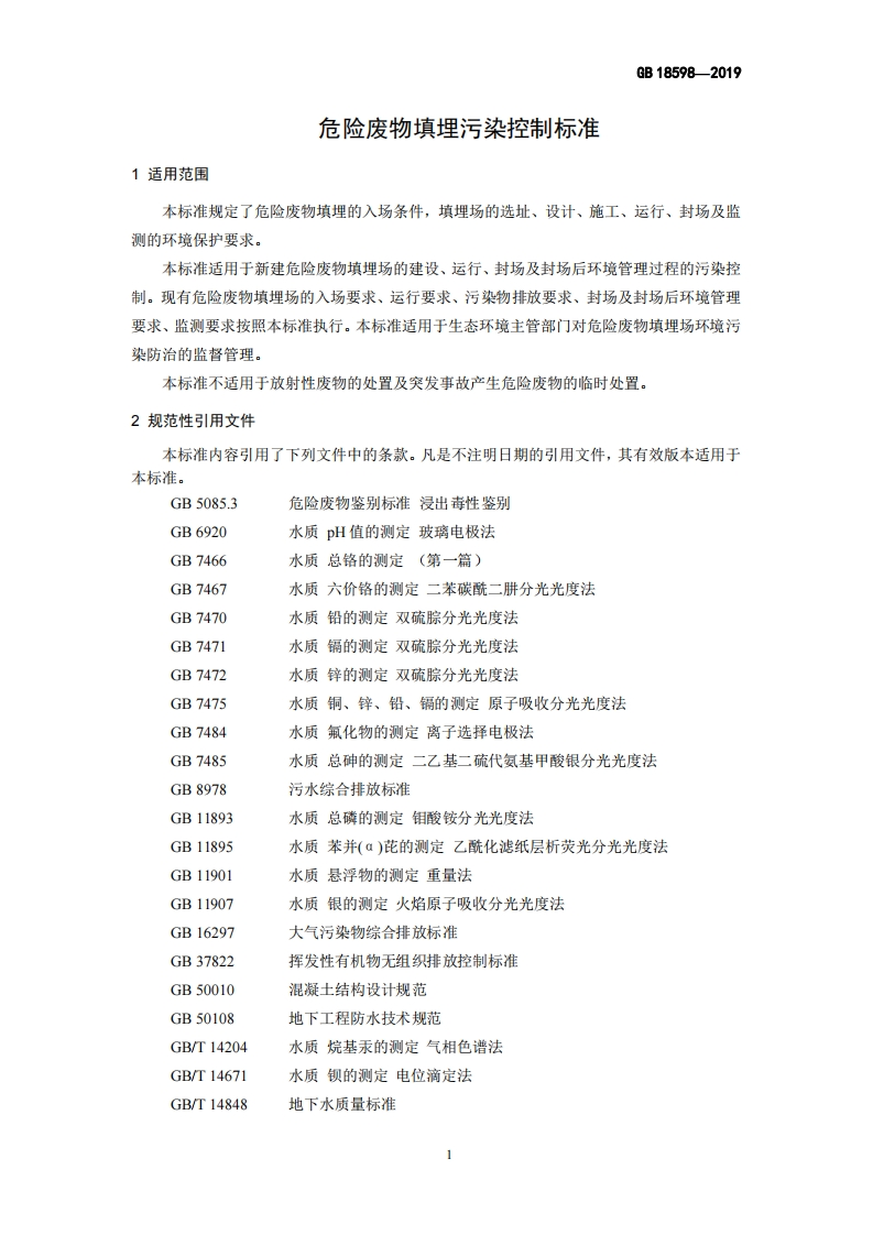 危险废弃物填埋污染管控标准(发布版)348072@abc4天前发布关注私信0.64MB20页048危险废弃物填埋污染管控标准(发布版)此内容为付费资源,请付费后查看¥16¥19黄金会员免费钻石会员免费立即购买您当前未登录!建议登陆后购买,可保存购买订单付费资源 第1页 / 共20页 第2页 / 共20页 第3页 / 共20页 第4页 / 共20页 第5页 / 共20页 试读已结束,还剩15页,您可下载完整版后进行离线阅读 THE END标准规范 文本预览 GB中华人民共和国国家标准GB18598-2019代替GB18598-2001危险废物填埋污染控制标准Standard for pollution control on the hazardous waste landfill(发布稿)本电子版为发布稿,请以中国环境出版集团出版的正式标准版本为准。2019一09一30发布2020一06一01实施生态环境部发布国家市场监督管理总局 查看更多 收起部分 喜欢就支持一下吧收藏