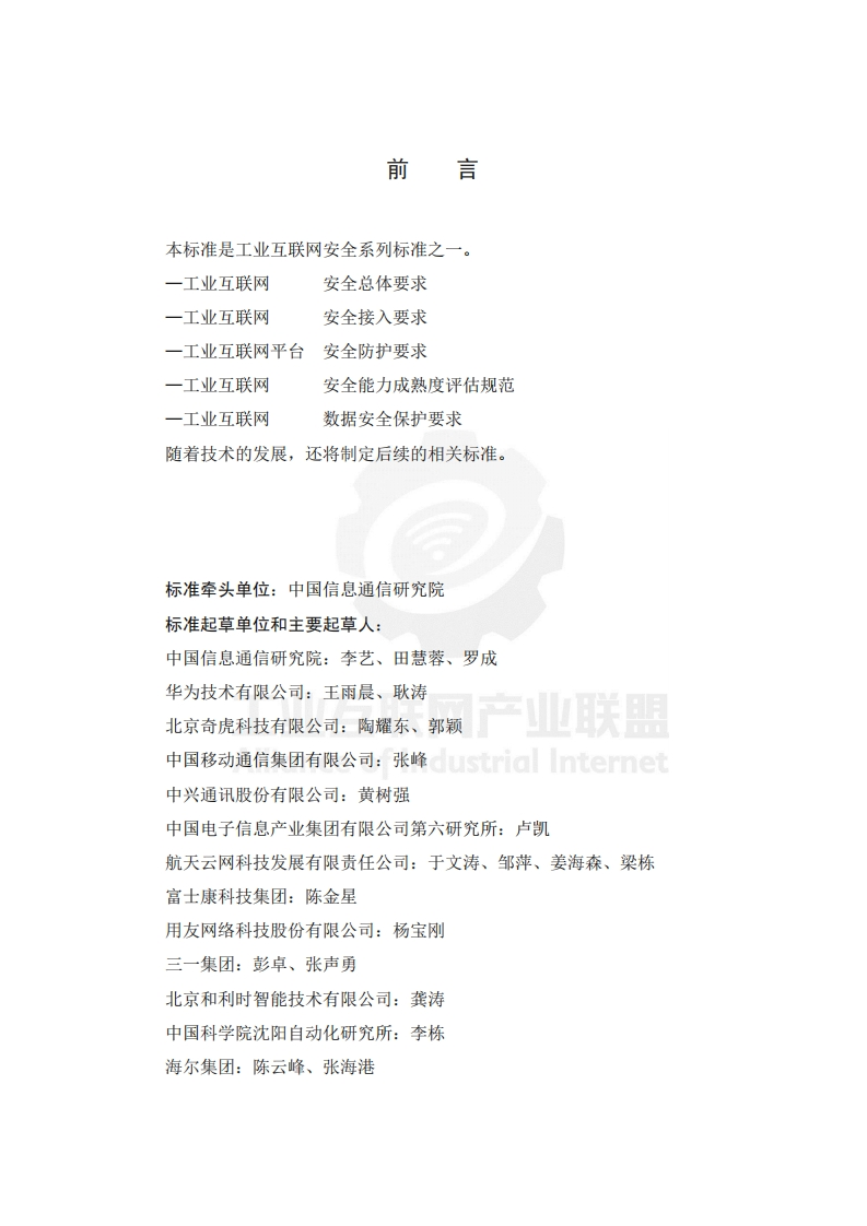 工业互联网平台安全防护规范348072@abc5天前发布关注私信0.99MB36页027工业互联网平台安全防护规范此内容为付费资源,请付费后查看¥16¥19黄金会员免费钻石会员免费立即购买您当前未登录!建议登陆后购买,可保存购买订单付费资源 第1页 / 共36页 第2页 / 共36页 第3页 / 共36页 第4页 / 共36页 第5页 / 共36页 试读已结束,还剩31页,您可下载完整版后进行离线阅读 THE END标准规范 文本预览 工业互联网产业联盟Alliance of Industrial Internet工业互联网产业联盟标准A11/004-2018工业互联网平台安全防护要求Security Protection Requirements for IndustrialInternet Platform工业互联网产业联盟(2018年2月2日发布) 查看更多 收起部分 喜欢就支持一下吧收藏