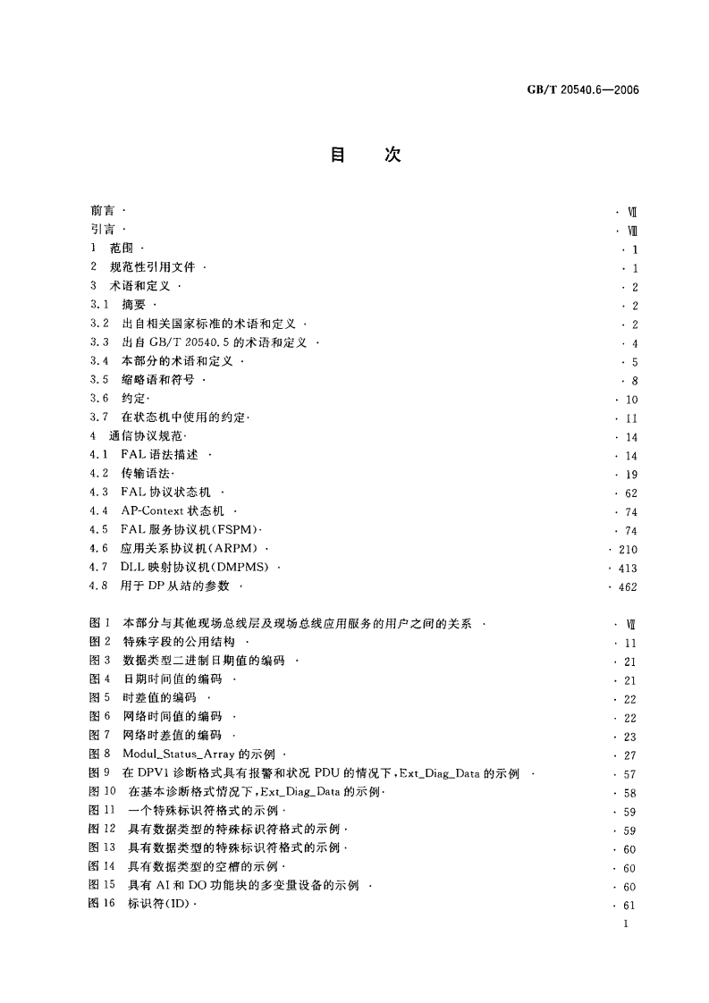 1Cs25.040N10中华人民共和国国家标准GB/T20540.6-2006测量和控制数字数据通信工业控制系统用现场总线类型3:PROFIBUS规范第6部分:应用层协议规范Digital data communication for measurement and control-Fieldbus foruse in industrial control systems-Type 3:PROFIBUS specification-Part 6:Application layer protocol specification(IEC61158-6Type3:2003,MOD)2006-10-16发布2007-05-01实施中华人民共和国国家质量监督检验检疫总局中国国家标准化管理委员会发布