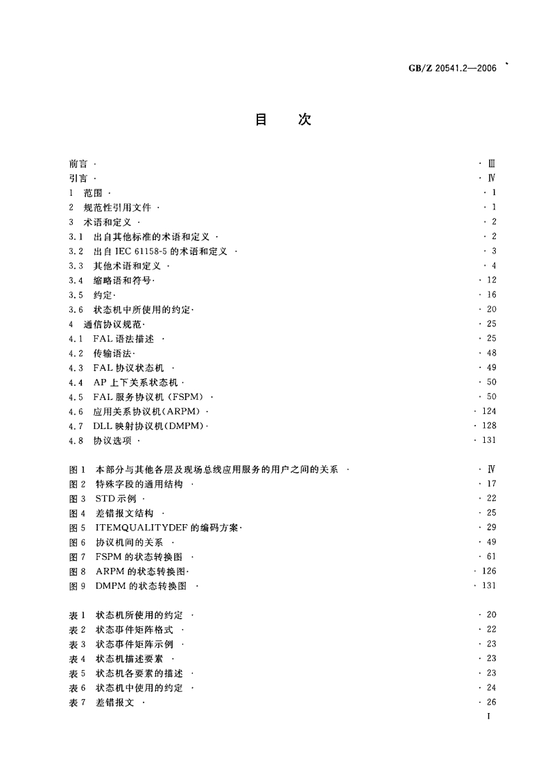 ICs25.040N10中华人民共和国国家标准化指导性技术文件GB/Z20541.2-2006测量和控制数字数据通信工业控制系统用现场总线类型10:PROFINET规范第2部分:应用层协议规范Digital data communication for measurement and control-Fieldbus for use inindustrial control systems-Type 10:PROFINET specification-Part 2:Application layer protocol specification(IEC 61158-6 TYPE 10:2003,Digital data communication for measurement andcontrol-Fieldbus for use in industrial control systems-Part 6:Applicationlayer protocol specification-Type 10:PROFINET specification,MOD)2006-10-16发布中华人民共和国国家质量监督检验检疫总局中国国家标准化管理委员会发布