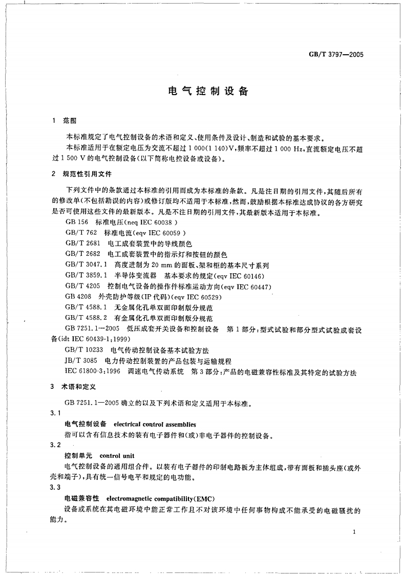 电气控制设备Electricalcontrolassemblies348072@abc7天前发布关注私信0.74MB23页036电气控制设备Electricalcontrolassemblies此内容为付费资源,请付费后查看¥16¥19黄金会员免费钻石会员免费立即购买您当前未登录!建议登陆后购买,可保存购买订单付费资源 第1页 / 共23页 第2页 / 共23页 第3页 / 共23页 第4页 / 共23页 第5页 / 共23页 试读已结束,还剩18页,您可下载完整版后进行离线阅读 THE END标准规范 文本预览 1ICs29.240.30K62中华人民共和国国家标准GB/T3797-2005代替GB/T3797-1989电气控制设备Electrical control assemblies2005-02-06发布2005-08-01实施中华人民共和国国家质量监督检验检疫总局发布数防伤7中国国家标准化管理委员会 查看更多 收起部分 喜欢就支持一下吧收藏