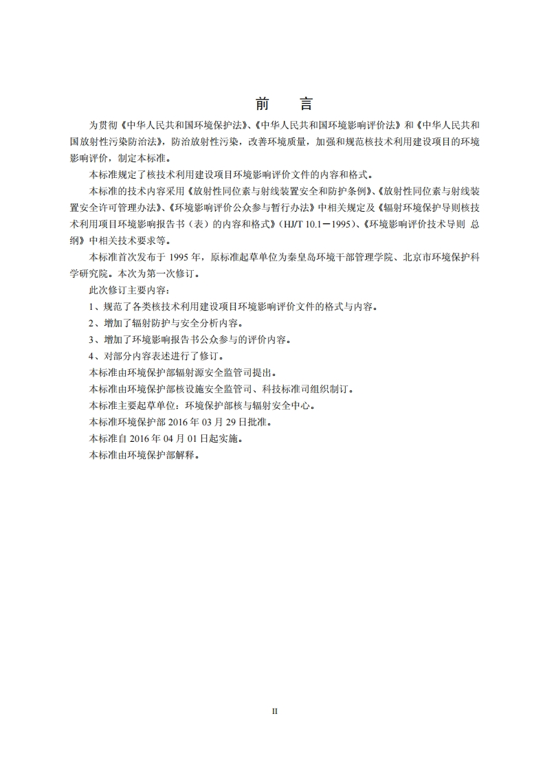 HJ中华人民共和国国家环境保护标准HJ10.1-2016代替H/T10.1-1995辐射环境保护管理导则核技术利用建设项目环境影响评价文件的内容和格式Radiation environmental protection management guidelinesContent and format of environmental impacts evaluation document for nucleartechnology application facilities(发布稿)本电子版为发布稿。请以中国环境科学出版社出版的正式标准文本为准。2016-03-29发布2016-04-01实施环境保护部发布