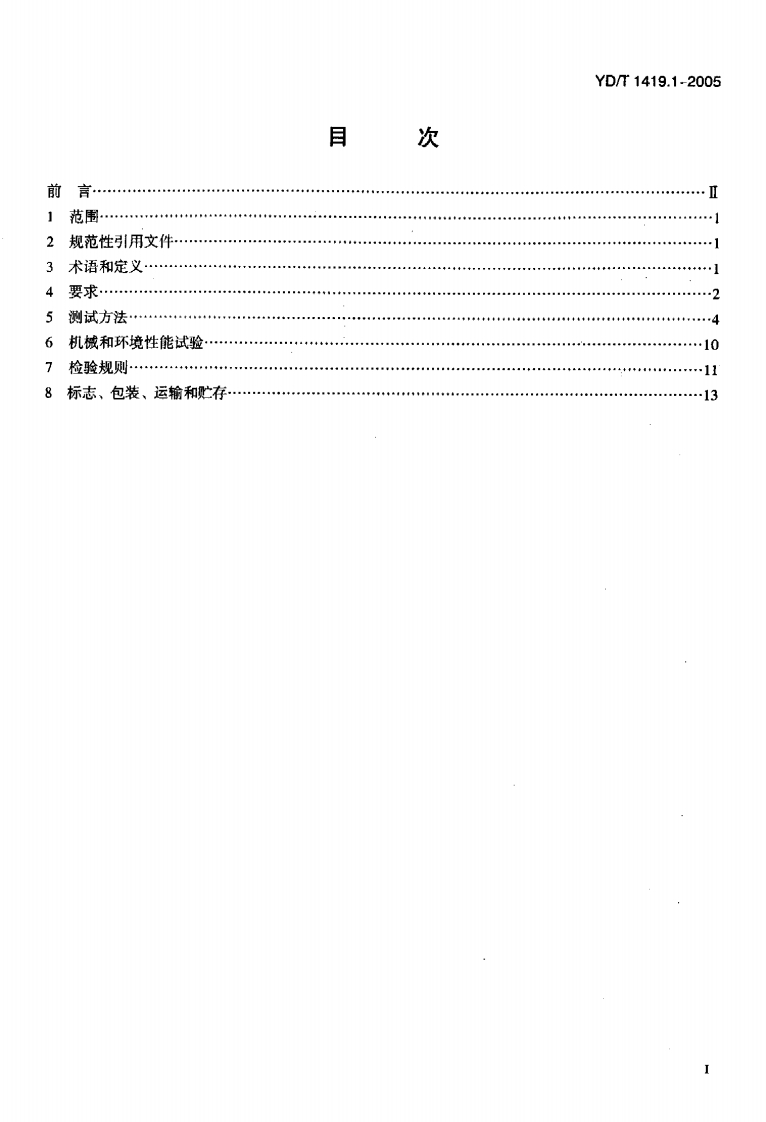 CS33.180.01M33备案号:YO中华人民共和国通信行业标准YD/T1419.1-2005接入网用单纤双向三端口光组件技术条件第1部分:用于宽带无源光网络(BPON)光网络单元(ONU)的单纤双向三端口光组件Technical conditions of Triplexer optical assembly for access networkPart1:General characteristics of Triplexer optical assemblyfor Broadband passive optical network(BPON)light network unit (ONU)2005-12-26发布2006-03-01实施中华人民共和国信息产业部发布