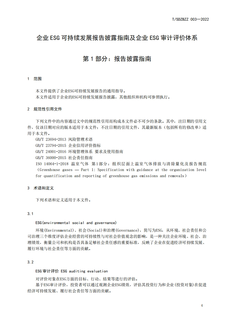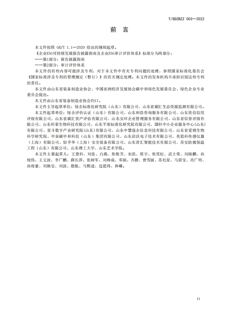 ICS03.100CCS A 00USDZBZZ山东省装备制造业协会团体标准T/SDZBZZ 003-2022企业ESG可持续发展报告披露指南及企业ESG审计评价体系第1部分:报告披露指南Guidelines for disclosure of enterprise ESG sustainable development reporting andauditing evaluation system ofenterprise ESGPart 1:Reporting disclosure guidelines2022-12-24发布2023-01-08实施山东省装备制造业协会发布