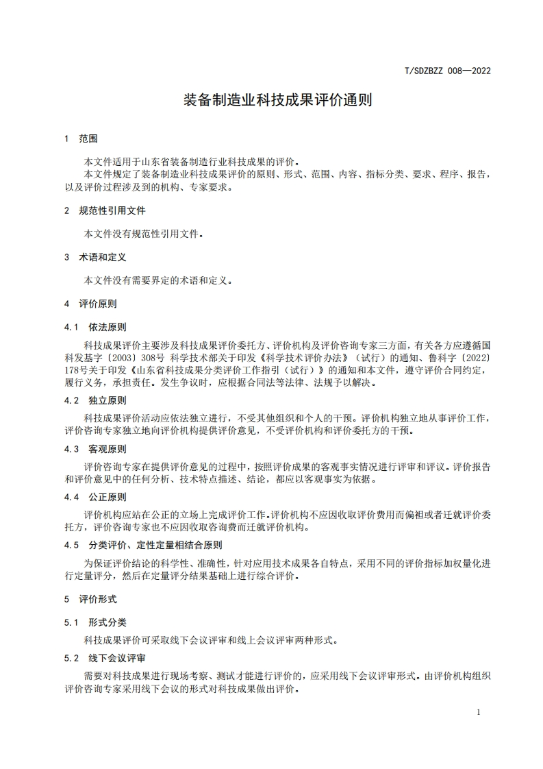 装备制造业科技成果评价通则Generalrulesofevaluationforscientificandtechnologicalachievementsinequipmentmanufacturingindustry348072@abc8天前发布关注私信0.23MB8页050免费资源装备制造业科技成果评价通则Generalrulesofevaluationforscientificandtechnologicalachievementsinequipmentmanufacturingindustry资源下载123云盘123云盘提示:操作频繁,请稍后再试 第1页 / 共8页 第2页 / 共8页 第3页 / 共8页 第4页 / 共8页 第5页 / 共8页 该文档为免费文档,您可直接下载完整版进行阅读 THE END标准规范 文本预览 ICS03080CCS A 12U/SDZBZZ团体标准T/SDZBZZ 008-2022装备制造业科技成果评价通则General rules of evaluation for scientific and technological achievements inequipment manufacturing industry2023-09-18发布2023-10-03实施山东省装备制造业协会发布 查看更多 收起部分 喜欢就支持一下吧收藏