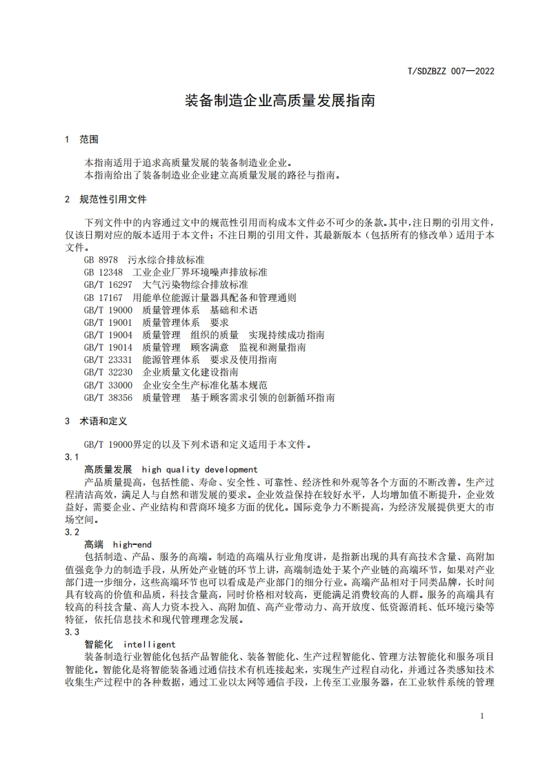 装备制造企业高品质发展指引348072@abc9天前发布关注私信0.26MB10页046免费资源装备制造企业高品质发展指引资源下载123云盘提取码:1293 第1页 / 共10页 第2页 / 共10页 第3页 / 共10页 第4页 / 共10页 第5页 / 共10页 该文档为免费文档,您可直接下载完整版进行阅读 THE END标准规范 文本预览 ICS03.120.10CCS A 00U/SDZBZZ团体标准T/SDZBZZ 007-2022装备制造企业高质量发展指南Guidelines for high quality development of equipment manufacturing enterprises2023-Xx-XX发布2023-Xx-X实施山东省装备制造业协会发布 查看更多 收起部分 喜欢就支持一下吧收藏