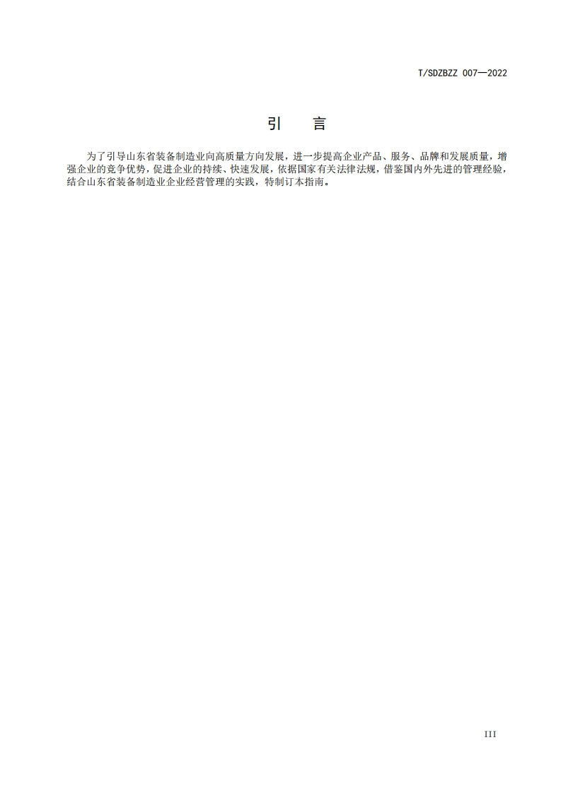 装备制造企业高品质发展指引Guidelinesforhigh-qualitydevelopmentofequipmentmanufacturingenterprises348072@abc9天前发布关注私信0.26MB10页023免费资源装备制造企业高品质发展指引Guidelinesforhigh-qualitydevelopmentofequipmentmanufacturingenterprises资源下载本地下载 第1页 / 共10页 第2页 / 共10页 第3页 / 共10页 第4页 / 共10页 第5页 / 共10页 该文档为免费文档,您可直接下载完整版进行阅读 THE END标准规范 文本预览 ICS03.120.10CCS A 00U/SDZBZZ团体标准T/SDZBZZ 007-2022装备制造企业高质量发展指南Guidelines for high quality development of equipment manufacturing enterprises2023-09-18发布2023-10-13实施山东省装备制造业协会发布 查看更多 收起部分 喜欢就支持一下吧收藏