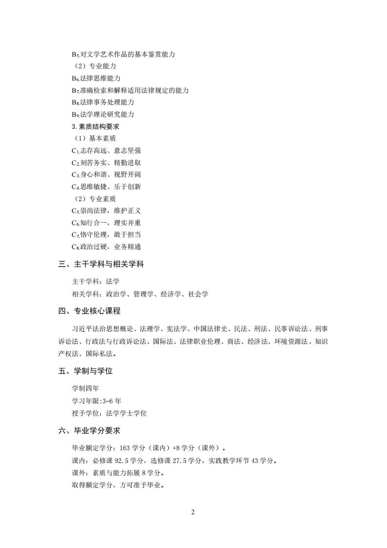 专业编号030101k法律专业培育方案2