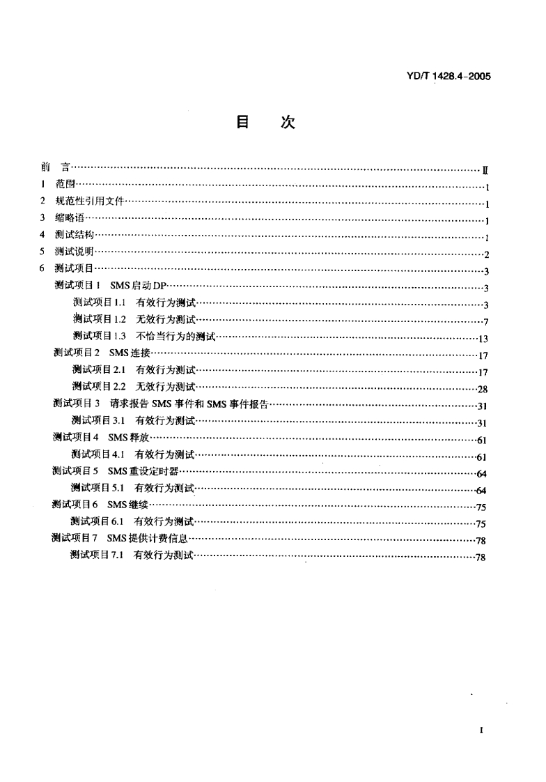YD中华人民共和国通信行业标准YD/T1428.4-2005900/1800 MHz TDMA数字蜂窝移动通信网CAMEL应用部分(CAP)测试方法(CAMEL3)第4部分:业务控制点(SCP)短消息业务(SMS)Testing methods for 900/1800MHz TDMA digital cellular mobileCommunication network CAMEL Application Part(CAP)(CAMEL3)Part4—SCP SMS2005-12-26发布2006-03-01实施中华人民共和国信息产业部发布