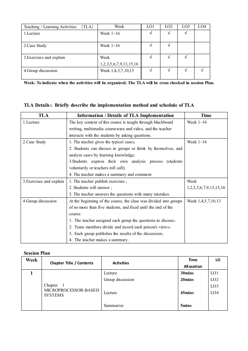 ISEC Course SyllabusCourse Title:Microcomputer Principles and Interface TechnologyCourse Code:181000210Major of The Students:Electronic Science and TechnologyCourse Credit:3Total Contact Hours:48 (Lecture,3 hours per weekContact information of the instructor:744752028@qq.comPre-Requisite:Analog Electronics with Lab;Digital Electronics with LabCourse Description:This course is a very important professional core course of electronic information,focusing on theprinciples and application topics of microcomputers,taking Intelx86CPU as the main line,systematicallyintroducing the basic knowledge,basic composition,architecture and working mode of microcomputers,Intelx86CPU instruction system,assembly language and programming methods and skills,main memorydesign and I/O interface expansion methods.Through the study of this course,students are required to master the basic composition,workingprinciple,hardware connection and other content of microcomputer,write a simpler assembly languageprogram,establish the overall concept of microcomputer system,and enable students to have the preliminaryability to apply microcomputer system software and hardware development.Course Learning Outcomes:By the end of the course,students will be able to:1.LOI:Construct the knowledge system of microcomputer principles and interface technology by basicconcepts,knowledge and basic theories.2.LO2:Write a programming program according to the requirements of the task.3.LO3:Analyze and design the memory circuit and interface circuit of the microcomputer.4.LO4:Play as a part of team and collaborate with others to complete tasks.Note:Each LOs should be defined to focus on skills,abilities that can be applied in the practice for theprofessional development and working context.The LOs should NOT be the contents of teaching and learningMapping of Assessment Event and LOs(Tick the LOs that can be evaluated by the particular assessment events)