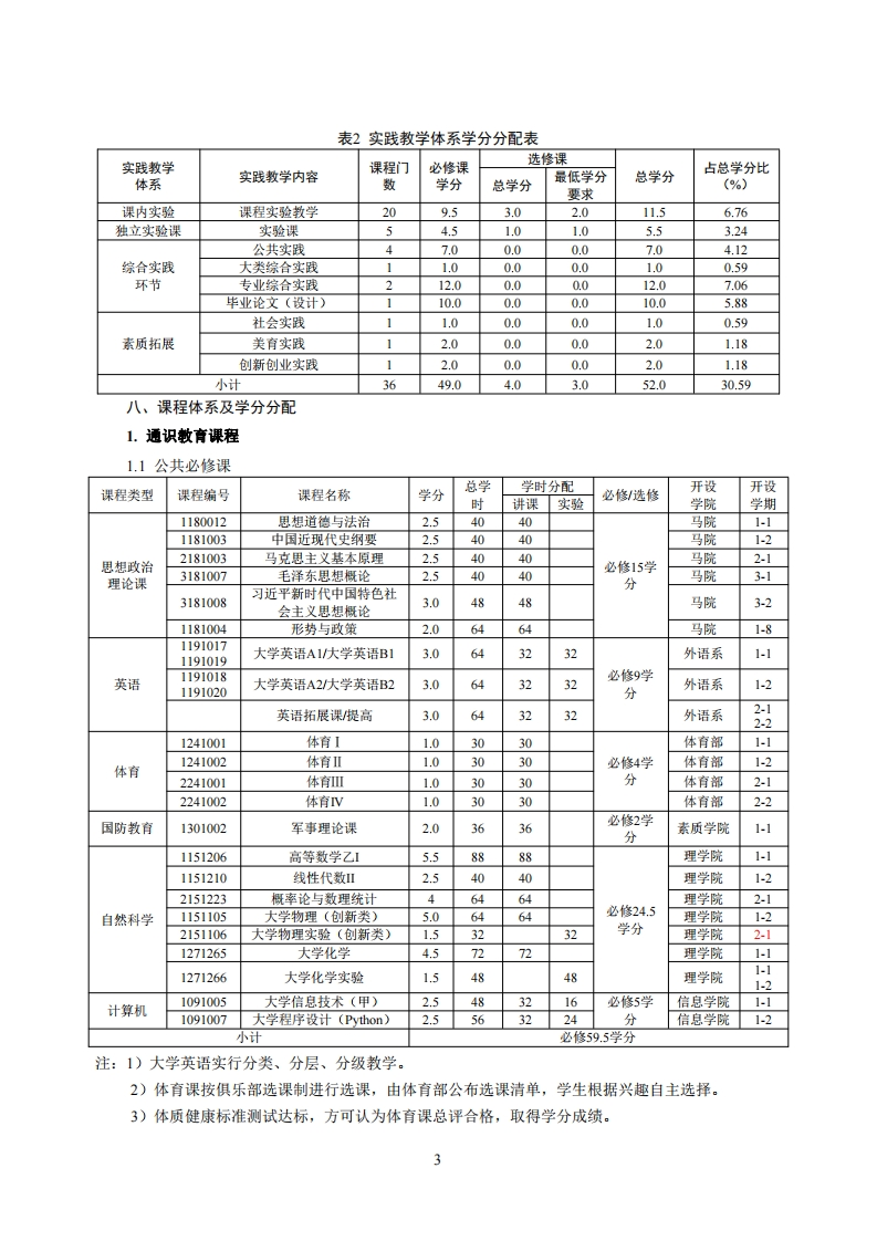 智慧牧业科学与工程专业人才培养方案专业代码:090307T专业名称:智慧牧业科学与工程一、培养目标1.基本培养目标培养的学生思想政治合格、身心健康、知识结构合理,德智体美劳全面发展,有健全的人格、高尚的人文精神情怀、深厚的三农情怀和社会责任感,有一定的批判思维与创新能力、科学研究能力、沟通交流能力、终身学习能力和组织管理能力,具有国际视野和团队合作精神。2.专业培养目标立足国家现代畜牧业发展需要,服务新时代乡村振兴战略,培养具有较强学习与创新能力,掌握智慧牧场设计与管理、畜牧大数据采集与分析、畜牧场环境控制技术、畜禽废弃物处理技术等专业知识,具备在智慧畜牧领域进行科学研究、智能畜牧装备和管理软件开发与应用的基本能力,求真务实、开拓创新,能够胜任智慧畜牧企业及相关事业与科研部门从事畜牧生产经营管理、技术和产品研发与推广等工作要求的具有高素质和创新能力的复合型卓越人才。二、毕业要求1.知识结构要求(1)基本知识A1掌握政治、历史、哲学、文学、艺术等领域的基本知识(培养学生具有正确的世界观、人生观、价值观、历史观、审美观)。A2掌握社会科学学科研究方法的基本知识(让学生掌握社会科学的基本知识,了解基本研究方法,具有人文情怀和社会责任感)。A3掌握数学与逻辑分析以及物理学的基础知识(让学生掌握数理逻辑分析、大学物理的基本知识)。A4掌握现代信息技术的基本知识(让学生掌握现代网络技术、遥感技术和信息处理技术等的基本知识)。A5掌握生态环境、生命科学、企业管理等方面的野等方面的基本知识(掌握自然环境与社会发展、经济管理与社会科学、科技发展与文明传承、文明对话与国际视野等方面的基本知识)。(2)专业知识A6掌握动物生理生化、机械工程、电工电子、生物信息、智慧牧场、数据库等学科基础理论知识。A7掌握精准动物营养、动物遗传繁育、动物行为与福利、生物统计、生物安全等基本理论知识。A8掌握智慧养殖、智慧牧场设计与管理、智能畜牧装备、生物资产管理、检测分析等专业知识与技能,具备从事智慧牧业科学与工程研究的基本素质和创新意识。2.能力结构要求(1)基本能力B1具备清晰思考和语言文字准确表达的能力。B2具备发现、分析和解决问题的能力。B3具备批判性思考、创造性工作以及终身学习的能力。B4具备组织、管理与领导能力,与人合作共事的能力。B5具备对文学艺术作品的基本鉴赏能力。(2)专业能力