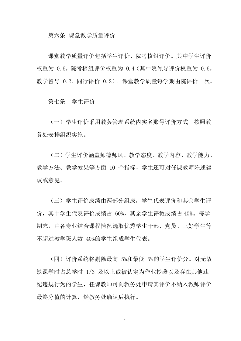物理科学与技术学院教师教学质量考核实施细则(试行)第一条为落实立德树人根本任务,贯彻“以学生为中心”的教学理念,增强教师教学质量意识,激发教师教学工作积极性,提高教育教学质量,特制定本细则。第二条本细则适用于物理科学与技术学院承担全日制教学工作的任课教师。教师教学质量考核工作每年进行一次。第三条考核工作的组织领导院长任院教师教学质量考核工作小组组长,院党总支书记负责监督,其他班子成员任副组长,教研室主任、院教学督导成员担任考核工作小组成员,负责制定教师教学质量考核实施细则及教师教学质量考核工作。第四条教师教学质量考核工作坚持客观、公正、公平、公开、注重实绩的原则。第五条教学质量考核内容包括课堂教学质量(含实验课)、实践教学与教学业绩两大部分。教师教学质量考核成绩由:(1)课堂教学质量评价:(2)实践教学与教学业绩两部分组成,其中课堂教学质量评价所占权重为0.8:实践教学与教学业绩所占权重为0.2。