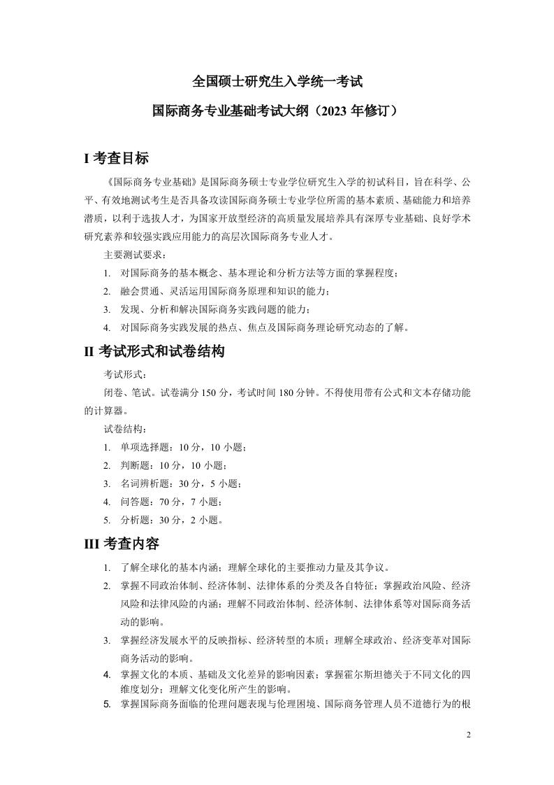 硕士研讨生入学报考大纲434国际商务专业根基(2023订正版本更新时间:2023年6月9日348072@abc前天发布关注私信40.43KB5页031硕士研讨生入学报考大纲434国际商务专业根基(2023订正版本更新时间:2023年6月9日此内容为付费资源,请付费后查看¥16¥19黄金会员免费钻石会员免费立即购买您当前未登录!建议登陆后购买,可保存购买订单付费资源 第1页 / 共5页 第2页 / 共5页 第3页 / 共5页 试读已结束,还剩2页,您可下载完整版后进行离线阅读 THE ENDPPT模板招生策划 文本预览 目录工考查目标..2II考试形式和试卷结构2III考查内容....2IV题型示例及参考答案IV参若文献....5 查看更多 收起部分 喜欢就支持一下吧收藏