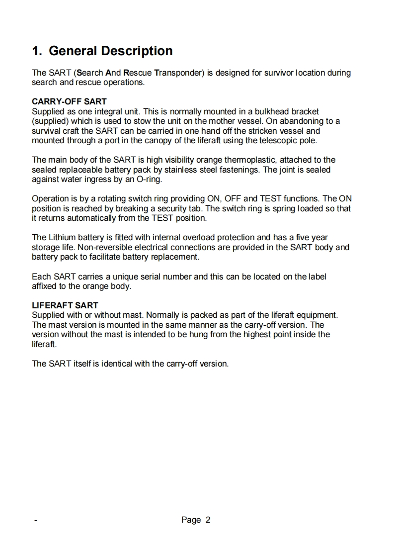86-920-001N_Issue_9_S4_SART_User_Manual操作说明书手册348072@abc昨天发布关注私信0.38MB22页03386-920-001N_Issue_9_S4_SART_User_Manual操作说明书手册此内容为付费资源,请付费后查看¥16¥19黄金会员免费钻石会员免费立即购买您当前未登录!建议登陆后购买,可保存购买订单付费资源 第1页 / 共22页 第2页 / 共22页 第3页 / 共22页 第4页 / 共22页 第5页 / 共22页 试读已结束,还剩17页,您可下载完整版后进行离线阅读 THE END无线电 文本预览 mcmurdo西形平之054 RESCUE SARTSEARCH RESCUETRANSPONDERUSER MANUAU 查看更多 收起部分 喜欢就支持一下吧收藏