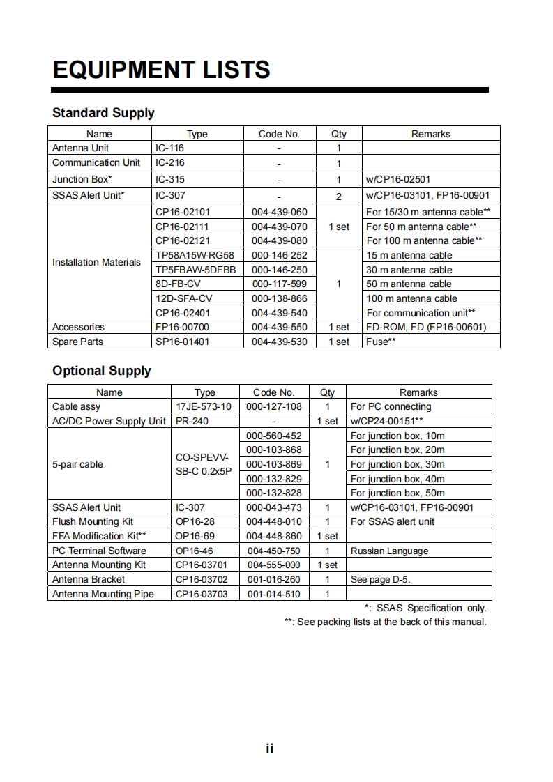 FURUNOINMARSAT MINI-C MOBILE EARTH STATIONFELCOM 16Installation ManualTABLE OF CONTENTSEQUIPMENT LISTS.…..iSYSTEM CONFIGURATION............1.MOUNTING THE UNIT…11.1 Antenna Unit.…1.2 Communication Unit.....11.3 AC/DC Power Supply Unit PR-240 (option)........7.7.82.1 Antenna Cable Connector at the Terminal Unit....93.SETTINGS AFTER THE INSTALLATION..............113.1 Installing software.................3.2 Setting the IMN(Inmarsat Mobile No.).....11.154.CHANGING POWER SUPPLY SPECIFICATIONS.16PACKING LISTS…A-1OUTLINE DRAWINGS....D-1INTERCONNECTION DIAGRAM.....S-1FURUNO ELECTRIC CO.,LTD.www.furuno.co.jpAll brand and product names are trademarks,registered trademarks or service marks of their respective holders.