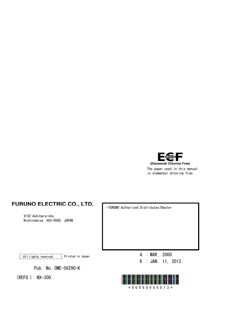 Furuno_NX-300_OperatorManual操作说明书手册348072@abc9小时前发布关注私信1.75MB67页043Furuno_NX-300_OperatorManual操作说明书手册此内容为付费资源,请付费后查看¥16¥19黄金会员免费钻石会员免费立即购买您当前未登录!建议登陆后购买,可保存购买订单付费资源 第1页 / 共67页 第2页 / 共67页 第3页 / 共67页 第4页 / 共67页 第5页 / 共67页 试读已结束,还剩62页,您可下载完整版后进行离线阅读 THE END无线电 文本预览 BackFURUKOPERATOR'S MANUALNAVTEX RECEIVERMODELNX-300FURUNO ELECTRIC CO.,LTD.www.furuno.com 查看更多 收起部分 喜欢就支持一下吧收藏