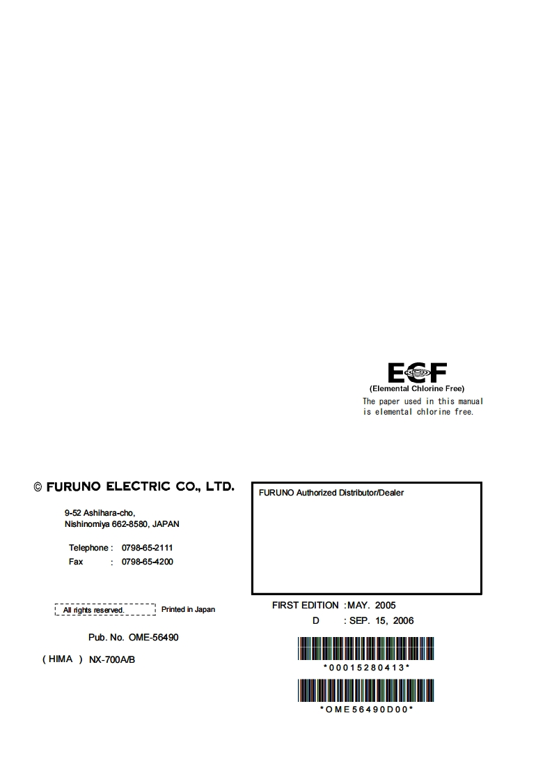 Furuno_NX-700_OperatorManual操作说明书手册348072@abc6小时前发布关注私信2.16MB89页031Furuno_NX-700_OperatorManual操作说明书手册此内容为付费资源,请付费后查看¥16¥19黄金会员免费钻石会员免费立即购买您当前未登录!建议登陆后购买,可保存购买订单付费资源 第1页 / 共89页 第2页 / 共89页 第3页 / 共89页 第4页 / 共89页 第5页 / 共89页 试读已结束,还剩84页,您可下载完整版后进行离线阅读 THE END无线电 文本预览 FURUNOOPERATOR'S MANUALNAVTEX RECEIVERMODEL NX-700A/BFURUNO ELECTRIC CO.,LTD.NISHINOMIYA,JAPAN 查看更多 收起部分 喜欢就支持一下吧收藏