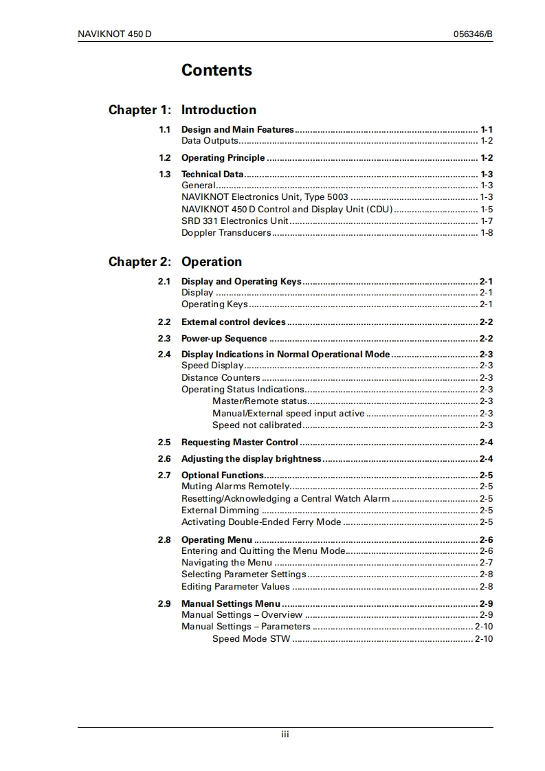 NORTHROP GRUMMANSperry MarineOperation,Installation and Service ManualSperry MarlneNAVIKNOTNAVIKNOT 450DMASTERACKMENUSTW12.8knENTERDAIlYTOTAL1234W1234567WDIMDIMSpeed LogNAVIKNOT 450 DSingle Axis Doppler Speed Logwith SRD331 Electronics Unit056346/B,18Jan2008Northrop Grumman Sperry Marine B.V.(Representative Office)Woltmanstr.19.20097 Hamburg,GermanyTel.:+49-40-299 00-0.Fax:+49-40-299 00-146.E-mail:service.de @sperry.ngc.com