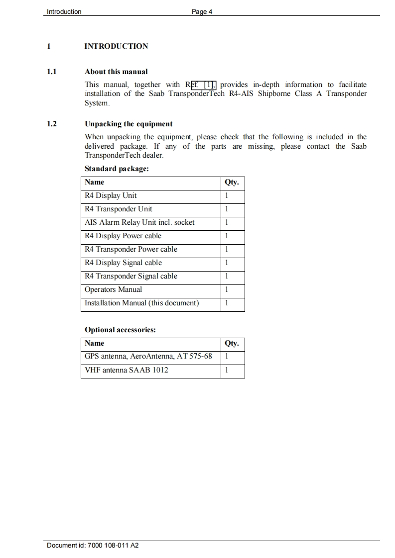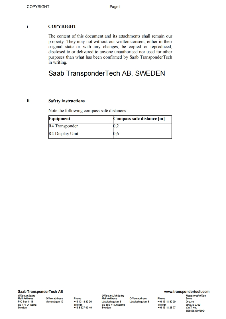 R4_AIS_Installation_Manual安装说明书手册_Shipborne_Class_A_T348072@abc昨天发布关注私信0.74MB70页027R4_AIS_Installation_Manual安装说明书手册_Shipborne_Class_A_T此内容为付费资源,请付费后查看¥16¥19黄金会员免费钻石会员免费立即购买您当前未登录!建议登陆后购买,可保存购买订单付费资源 第1页 / 共70页 第2页 / 共70页 第3页 / 共70页 第4页 / 共70页 第5页 / 共70页 试读已结束,还剩65页,您可下载完整版后进行离线阅读 THE END无线电 文本预览 Saab TransponderTechINSTALLATION MANUALR4-AlS Shipborne Class ATransponder SystemTransponderSAAB 查看更多 收起部分 喜欢就支持一下吧收藏