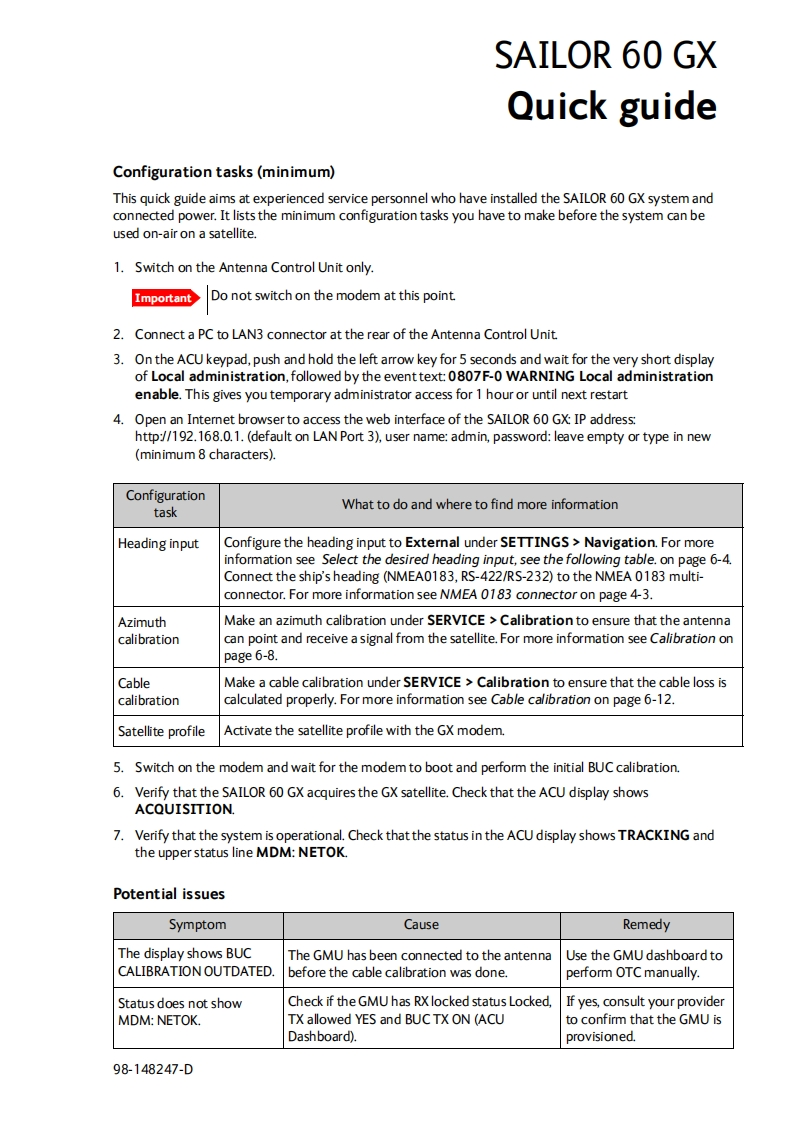 sailor-60-gx-high-power-installation-操作说明书手册348072@abc20小时前发布关注私信5.37MB190页044sailor-60-gx-high-power-installation-操作说明书手册此内容为付费资源,请付费后查看¥16¥19黄金会员免费钻石会员免费立即购买您当前未登录!建议登陆后购买,可保存购买订单付费资源 第1页 / 共190页 第2页 / 共190页 第3页 / 共190页 第4页 / 共190页 第5页 / 共190页 试读已结束,还剩185页,您可下载完整版后进行离线阅读 THE END无线电 文本预览 SAILOR 60 GXCOBHAMSAILOR 60 GX High PowerSAILOR 60 GX-R2,4.5 W and 9.0 WInstallation manualSAILOR.COBHAM。四Cobham Public 查看更多 收起部分 喜欢就支持一下吧收藏