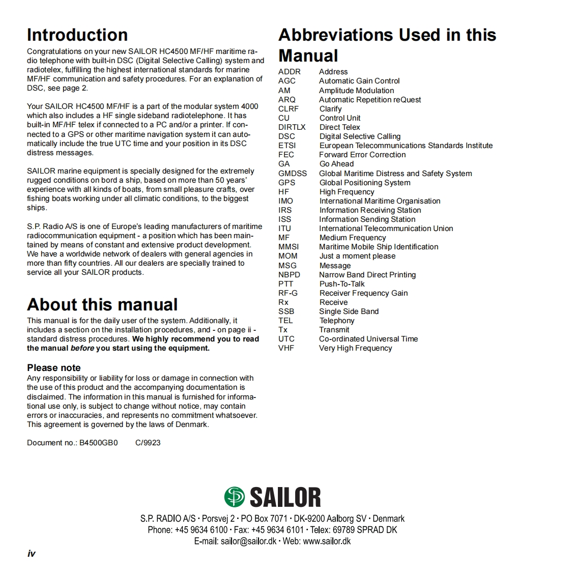 Sailor-HC4500-Operator-Manual操作说明书手册348072@abc21小时前发布关注私信0.51MB28页042Sailor-HC4500-Operator-Manual操作说明书手册此内容为付费资源,请付费后查看¥16¥19黄金会员免费钻石会员免费立即购买您当前未登录!建议登陆后购买,可保存购买订单付费资源 第1页 / 共28页 第2页 / 共28页 第3页 / 共28页 第4页 / 共28页 第5页 / 共28页 试读已结束,还剩23页,您可下载完整版后进行离线阅读 THE END无线电 文本预览 >Rx4357.0H2Tx405.0Hz23600a00007ySAILOR HC4500MF/HF CONTROL UNITOperating InstructionsDistress Calls,see page ii.List of contents,see page 1. 查看更多 收起部分 喜欢就支持一下吧收藏