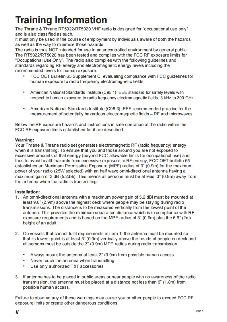 Sailor-RT5022-VHF-Manual操作说明书手册348072@abc23小时前发布关注私信1.88MB68页031Sailor-RT5022-VHF-Manual操作说明书手册此内容为付费资源,请付费后查看¥16¥19黄金会员免费钻石会员免费立即购买您当前未登录!建议登陆后购买,可保存购买订单付费资源 第1页 / 共68页 第2页 / 共68页 第3页 / 共68页 第4页 / 共68页 第5页 / 共68页 试读已结束,还剩63页,您可下载完整版后进行离线阅读 THE END无线电 文本预览 OPERATION MANUALSAILOR。SAILOR RT5022 VHF DSCSAILOR RT5020 VHF DSC DuplexSAILORDim12364日abcdeFMenu456jkLmnoMain MenuI DSC Callsa'789PqrsDW016Delw利可妙Thrane &Thrane 查看更多 收起部分 喜欢就支持一下吧收藏
