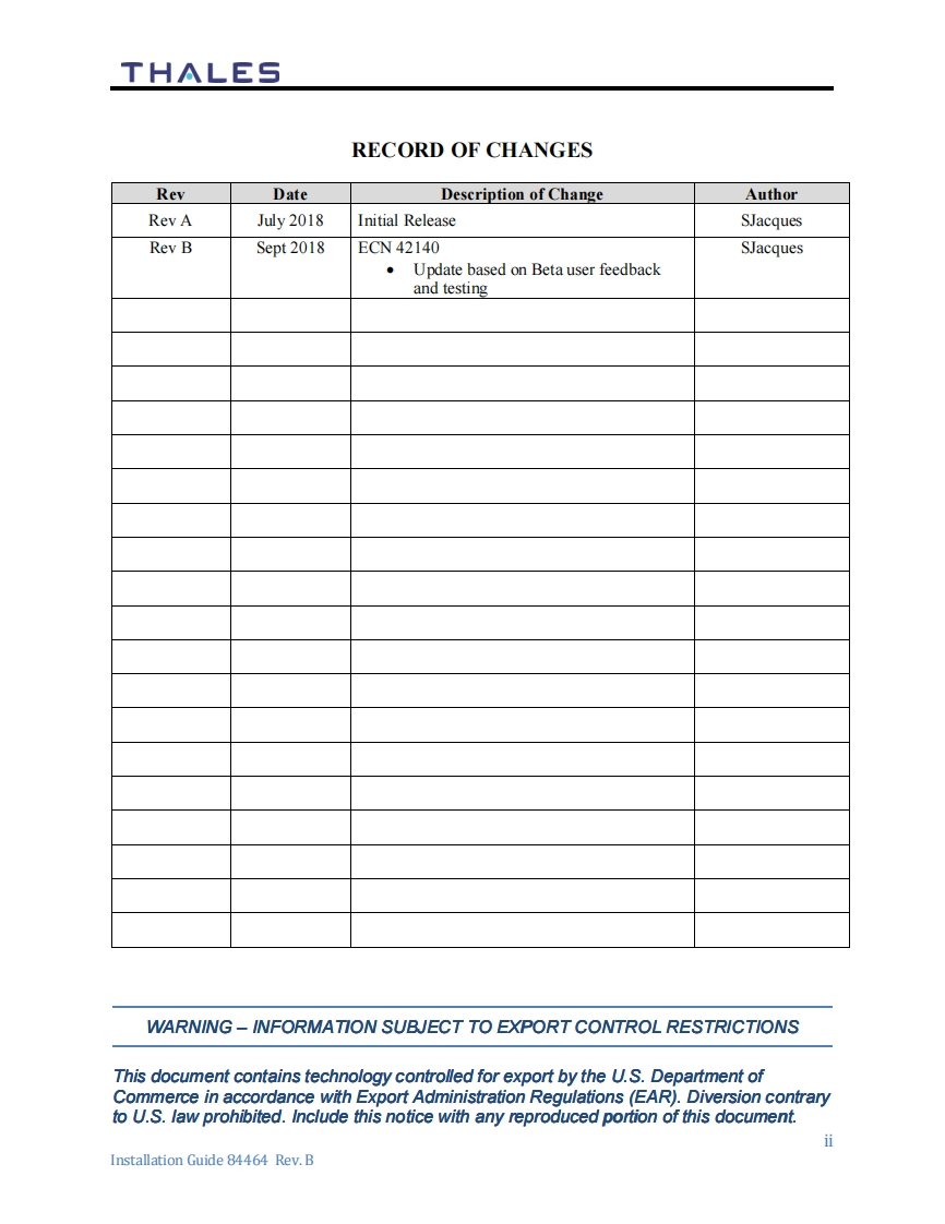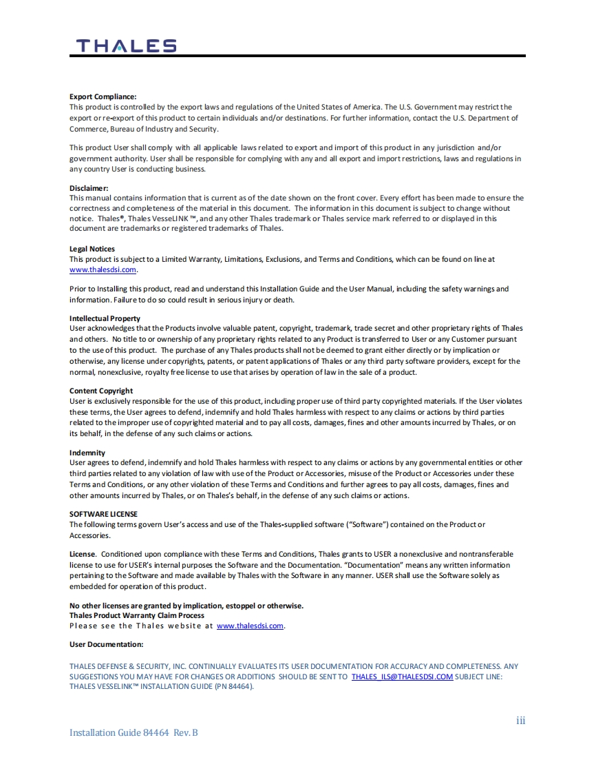 THALESSEPTEMBER 2018VesseLINKTMInstallation GuideThis document contains technology controlled for export by the U.S.Department ofCommerce in accordance with Export Administration Regulations.Diversion contrary toU.S.law prohibited.COPYRIGHT©2018THALES DEFENSE SECURITY,INCALL RIGHTS RESERVED
