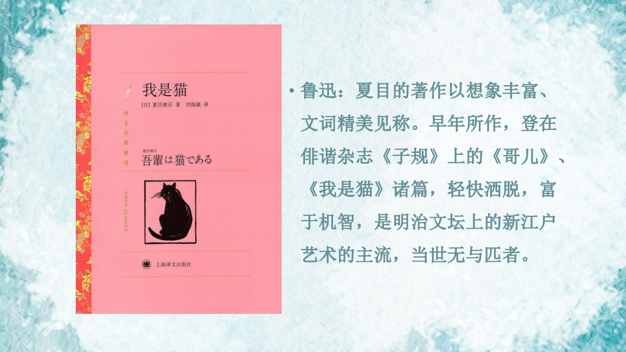 19第七章19世纪文学(下)第四节夏目漱石我是猫348072@abc14小时前发布关注私信2.90MB14页04219第七章19世纪文学(下)第四节夏目漱石我是猫此内容为付费资源,请付费后查看¥16¥19黄金会员免费钻石会员免费立即购买您当前未登录!建议登陆后购买,可保存购买订单付费资源 第1页 / 共14页 第2页 / 共14页 第3页 / 共14页 第4页 / 共14页 第5页 / 共14页 试读已结束,还剩9页,您可下载完整版后进行离线阅读 THE ENDMatlab仿真PPT模板人工智能工程机械 文本预览 第七章19世纪文学(下)第四节夏目漱石《我是猫》主讲人:乔琦(西安外国语大学)苗道我的名字 查看更多 收起部分 喜欢就支持一下吧收藏