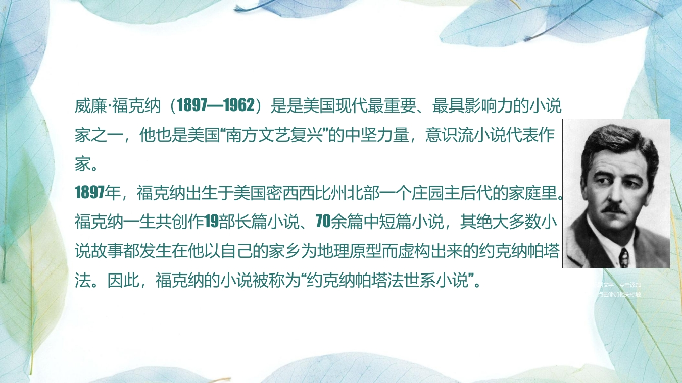 20世纪文学(上)第八章福克纳喧哗与骚动348072@abc11小时前发布关注私信1.71MB16页04820世纪文学(上)第八章福克纳喧哗与骚动此内容为付费资源,请付费后查看¥16¥19黄金会员免费钻石会员免费立即购买您当前未登录!建议登陆后购买,可保存购买订单付费资源 第1页 / 共16页 第2页 / 共16页 第3页 / 共16页 第4页 / 共16页 第5页 / 共16页 试读已结束,还剩11页,您可下载完整版后进行离线阅读 THE ENDMatlab仿真PPT模板人工智能工程机械 文本预览 第八章20世纪文学(上)第三节福克纳《喧哗与骚动》主讲人:孙霄(西安外国语大学) 查看更多 收起部分 喜欢就支持一下吧收藏