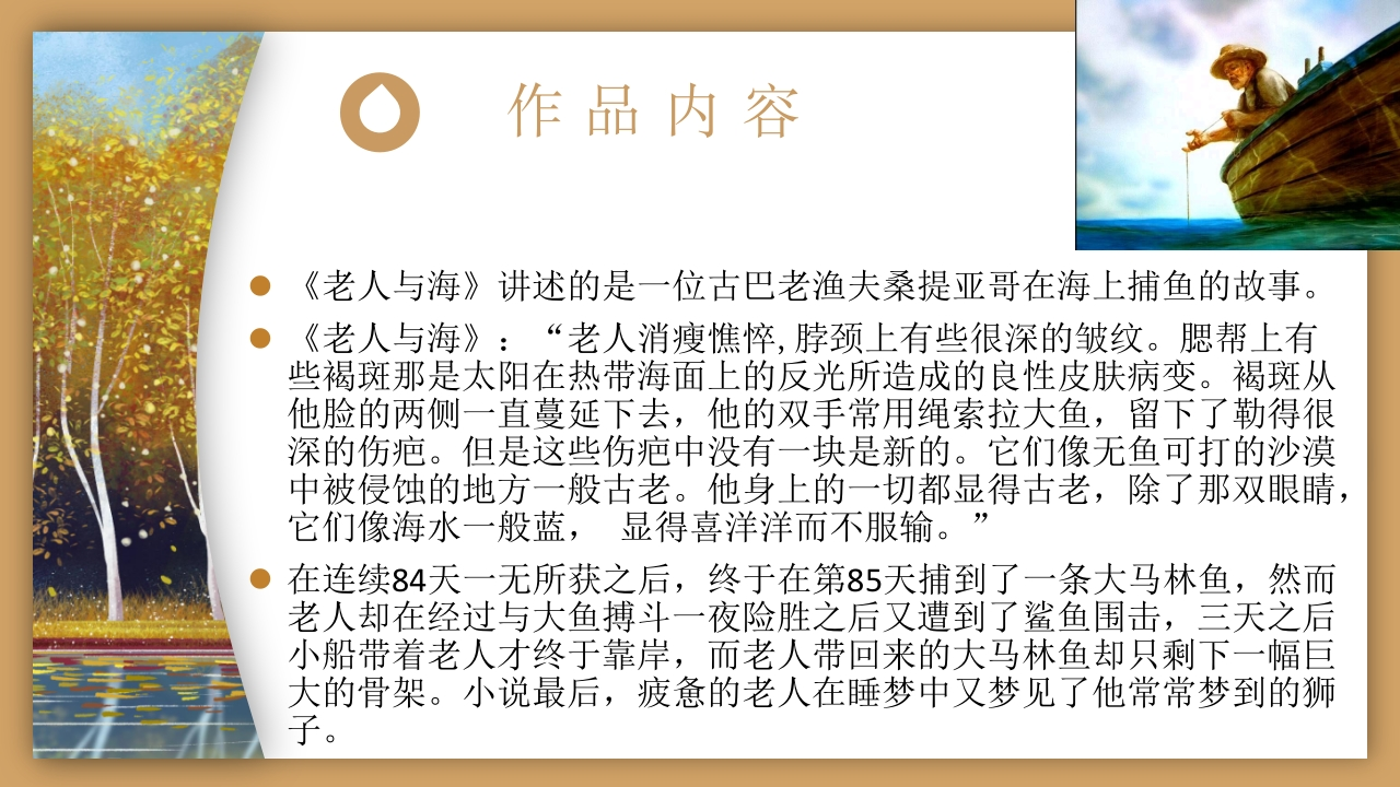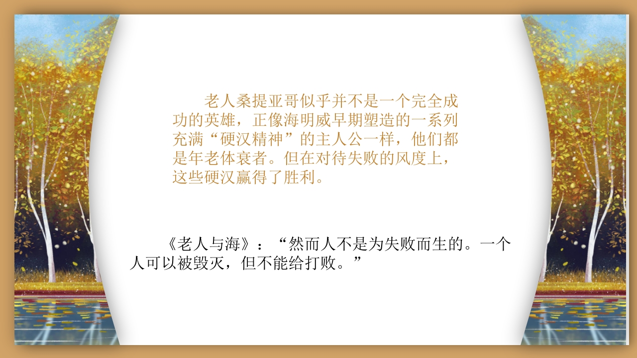 20第八章20世纪文学(上)第一节海明威老人与海的现代诠释348072@abc9小时前发布关注私信2.29MB14页04820第八章20世纪文学(上)第一节海明威老人与海的现代诠释此内容为付费资源,请付费后查看¥16¥19黄金会员免费钻石会员免费立即购买您当前未登录!建议登陆后购买,可保存购买订单付费资源 第1页 / 共14页 第2页 / 共14页 第3页 / 共14页 第4页 / 共14页 第5页 / 共14页 试读已结束,还剩9页,您可下载完整版后进行离线阅读 THE ENDMatlab仿真PPT模板人工智能工程机械 文本预览 第八章20世纪文学(上)第一节海明威《老人与海》主讲人:邹莹(西安外国语大学) 查看更多 收起部分 喜欢就支持一下吧收藏