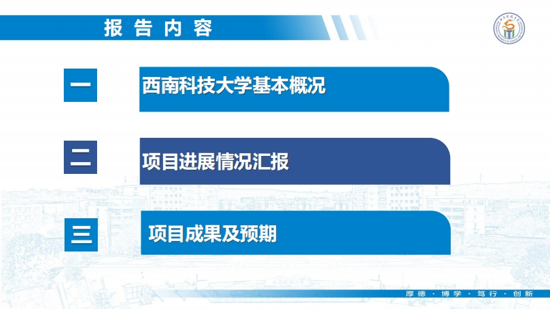 书科技大学硕士研究生个体培养质量监测亚项目工作进展报告348072@abc9小时前发布关注私信2.81MB21页021书科技大学硕士研究生个体培养质量监测亚项目工作进展报告此内容为付费资源,请付费后查看¥16¥19黄金会员免费钻石会员免费立即购买您当前未登录!建议登陆后购买,可保存购买订单付费资源 第1页 / 共21页 第2页 / 共21页 第3页 / 共21页 第4页 / 共21页 第5页 / 共21页 试读已结束,还剩16页,您可下载完整版后进行离线阅读 THE ENDMatlab仿真PPT模板人工智能工程机械 文本预览 西药科技女学Southwest University of Science and Technology研究生个体培养质量监测平台研究项目工作进展汇报西南科技大学2019年8月厚德·博学·笃行·创新 查看更多 收起部分 喜欢就支持一下吧收藏