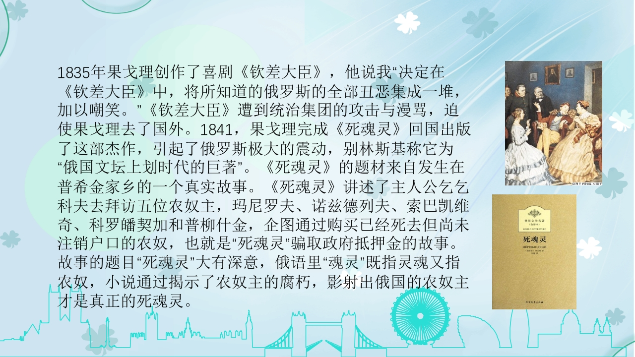 第六章19世纪文学(中)第二节果戈理死魂灵348072@abc12小时前发布关注私信5.14MB19页035第六章19世纪文学(中)第二节果戈理死魂灵此内容为付费资源,请付费后查看¥16¥19黄金会员免费钻石会员免费立即购买您当前未登录!建议登陆后购买,可保存购买订单付费资源 第1页 / 共19页 第2页 / 共19页 第3页 / 共19页 第4页 / 共19页 第5页 / 共19页 试读已结束,还剩14页,您可下载完整版后进行离线阅读 THE ENDMatlab仿真PPT模板人工智能工程机械 文本预览 第六章19世纪文学(中)第二节果戈理《死魂灵》主讲人:孙霄西安外国语大学场 查看更多 收起部分 喜欢就支持一下吧收藏