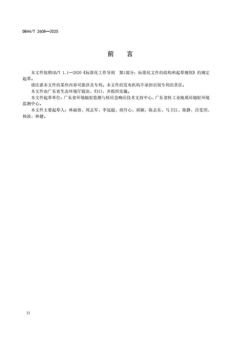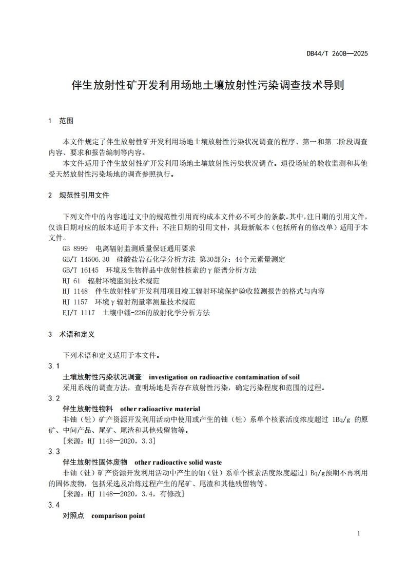 ICS13.080CCS Z 010844广东省地方标准DB44/T2608-2025伴生放射性矿开发利用场地土壤放射性污染调查技术导则Technical guidelines for investigation on soil radioactive contamination of the landfor development and utilization of other radioactive mines2025-01-23发布2025-04-23实施广东省市场监督管理局发布