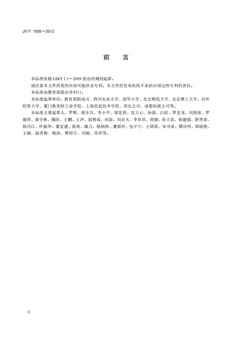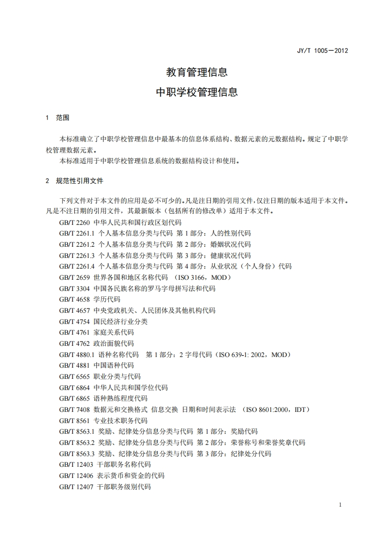 教学治理资讯中等职业院校EducationalGovernanceInformation348072@abc7天前发布关注私信0.58MB79页028教学治理资讯中等职业院校EducationalGovernanceInformation此内容为付费资源,请付费后查看¥16¥19黄金会员免费钻石会员免费立即购买您当前未登录!建议登陆后购买,可保存购买订单付费资源 第1页 / 共79页 第2页 / 共79页 第3页 / 共79页 第4页 / 共79页 第5页 / 共79页 试读已结束,还剩74页,您可下载完整版后进行离线阅读 THE END标准规范 文本预览 ICS35.240.99L60JY中华人民共和国教育行业标准JY/T1005-2012教育管理信息中职学校管理信息Educational management information-Management information for vocational schools2012-03-15发布2012-03-15实施中华人民共和国教育部发布 查看更多 收起部分 喜欢就支持一下吧收藏