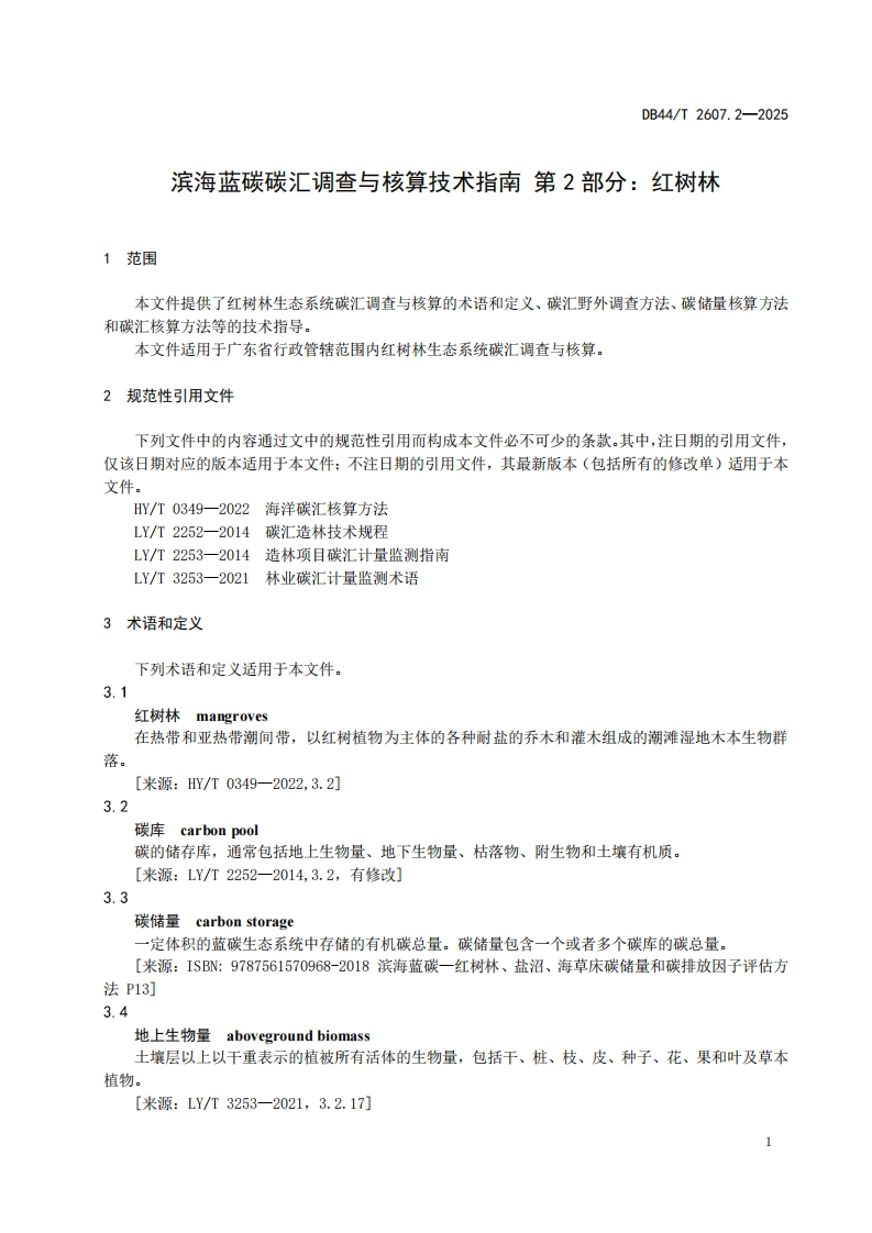 ICS93.160CCS P 550844广东省地方标准DB44/T2607.2-2025滨海蓝碳碳汇调查与核算技术指南第2部分:红树林Technical Guide for the Survey and Accounting of Coastal Blue Carbon Sink,Part 2:Mangroves2025-01-23发布2025-04-23实施广东省市场监督管理局发布