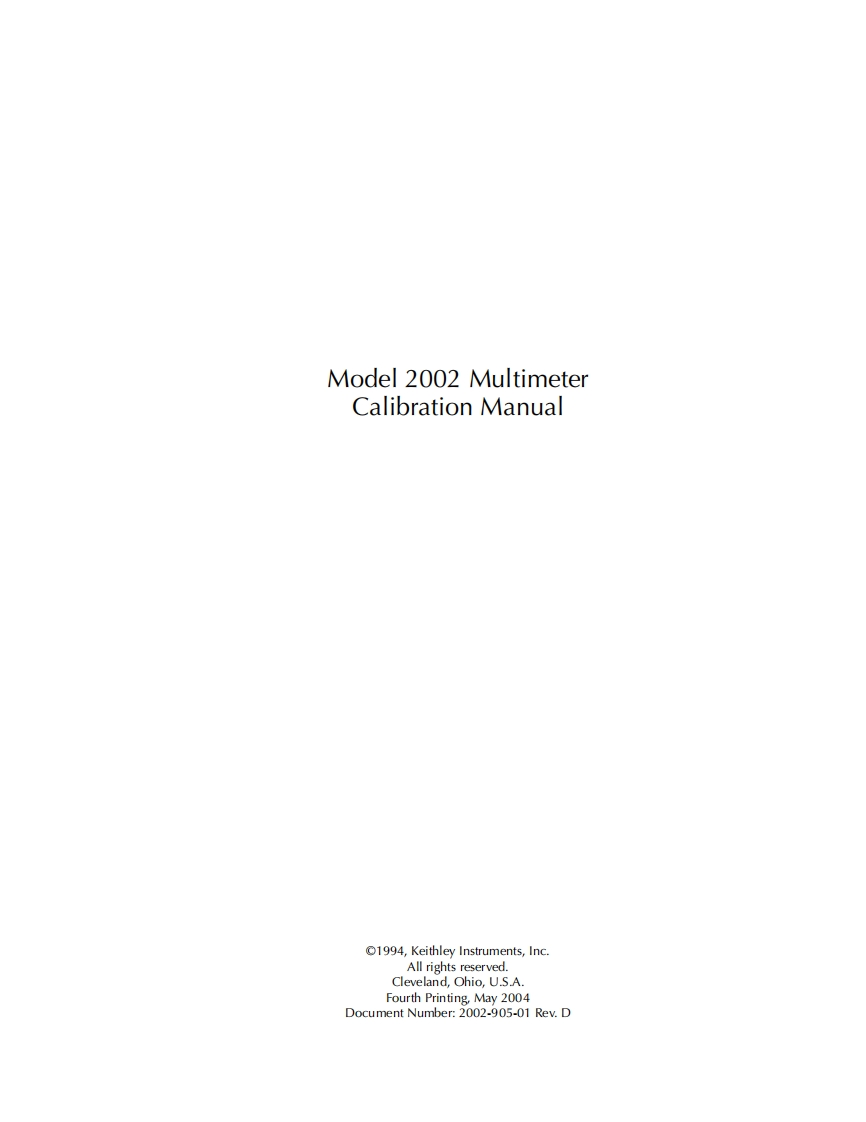 2002-校准手册348072@abc2天前发布关注私信0.80MB114页0362002-校准手册此内容为付费资源,请付费后查看¥16¥19黄金会员免费钻石会员免费立即购买您当前未登录!建议登陆后购买,可保存购买订单付费资源 第1页 / 共114页 第2页 / 共114页 第3页 / 共114页 第4页 / 共114页 第5页 / 共114页 试读已结束,还剩109页,您可下载完整版后进行离线阅读 THE END仪器仪表 文本预览 KEITHLEYModel 2002 MultimeterCalibration manualA GREATER MEASURE OF CONFIDENCE 查看更多 收起部分 喜欢就支持一下吧收藏