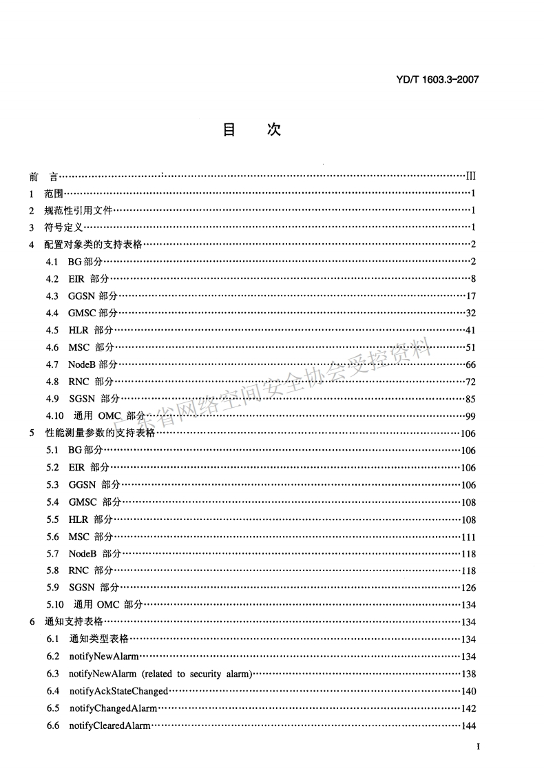1CS33060M30YD中华人民共和国通信行业标准YD/T1603.3-20072GHz数字蜂窝移动通信网网络管理测试方法网络管理系统NMS一网元管理系统(EMS)接口信息模型一致性测试第3部分:NCDMA网络资源模型Testing Methods for 2GHz Digital Cellular Mobile CommunicationsNetwork Management System(NMS)-Element ManagementSystem(EMS)Interface Information Model Consistency TestPart 3:WCDMA Network Resource Model2007-05-16发布2007-05-16实施中华人民共和国信息产业部发布