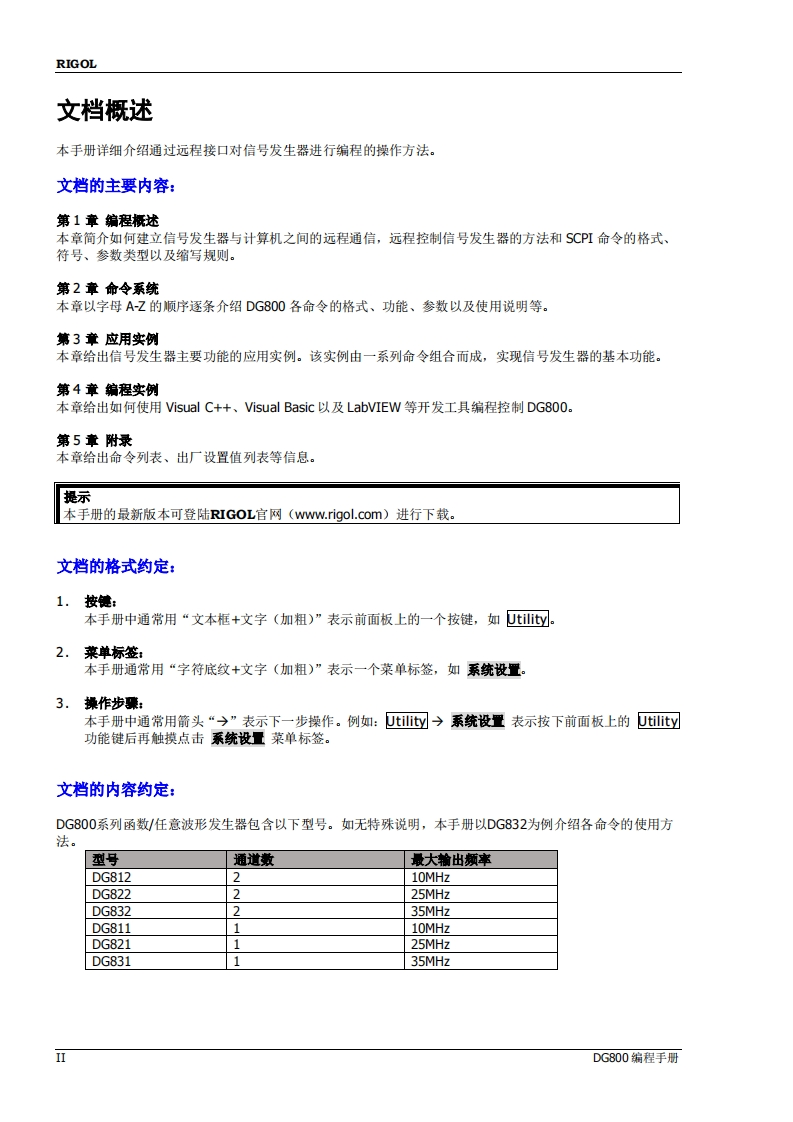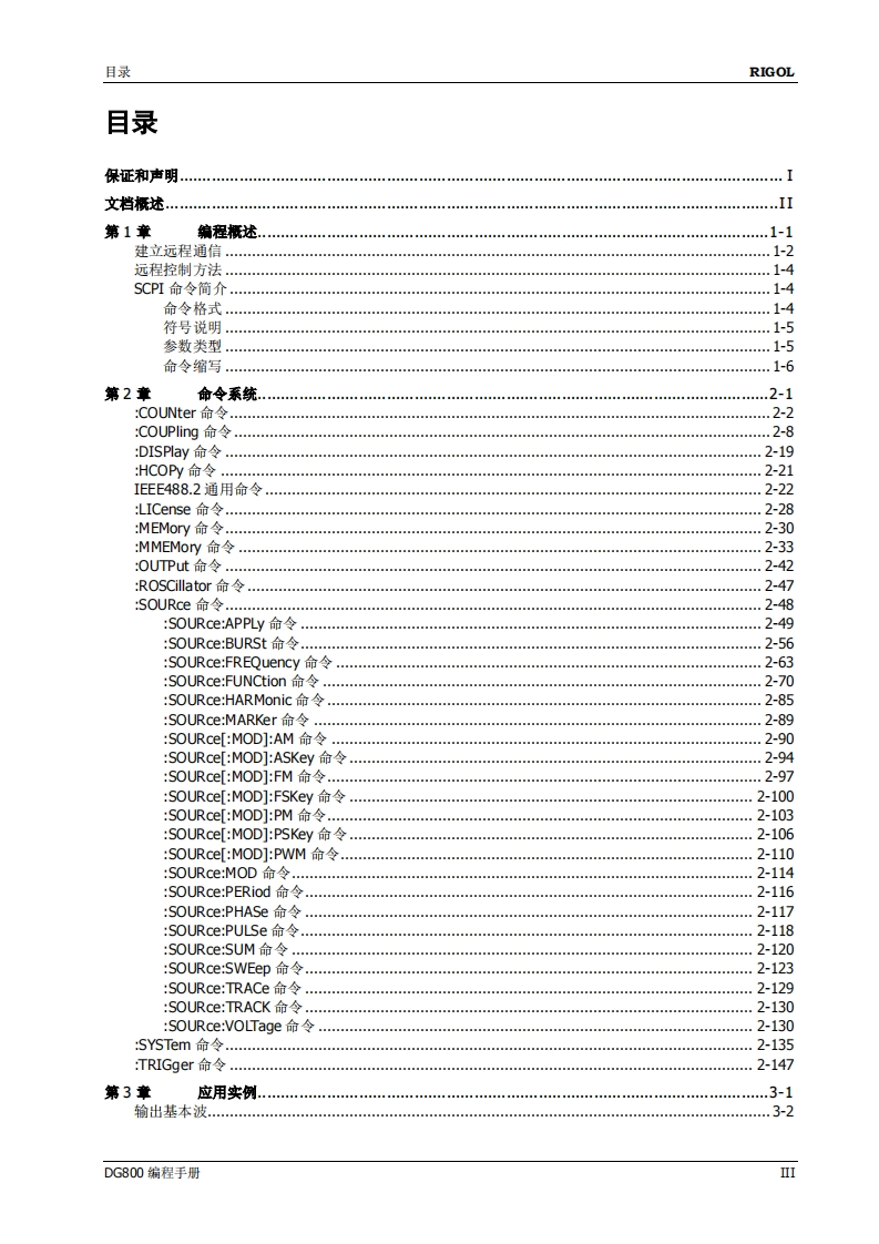 DG800_ProgrammingGuide_CN348072@abc2天前发布关注私信3.29MB199页026DG800_ProgrammingGuide_CN此内容为付费资源,请付费后查看¥16¥19黄金会员免费钻石会员免费立即购买您当前未登录!建议登陆后购买,可保存购买订单付费资源 第1页 / 共199页 第2页 / 共199页 第3页 / 共199页 第4页 / 共199页 第5页 / 共199页 试读已结束,还剩194页,您可下载完整版后进行离线阅读 THE END仪器仪表 文本预览 RIGOL编程手册DG800系列函数/任意波形发生器2018年7月RIGOL(SUZHOU)TECHNOLOGIES INC. 查看更多 收起部分 喜欢就支持一下吧收藏