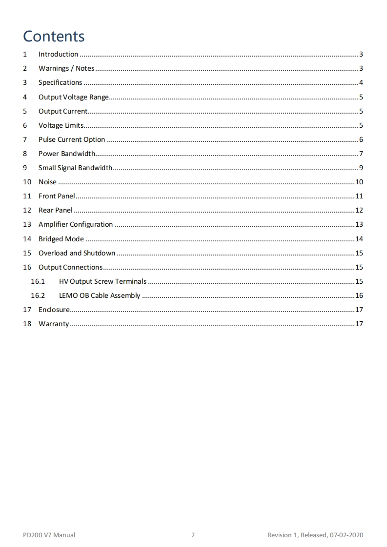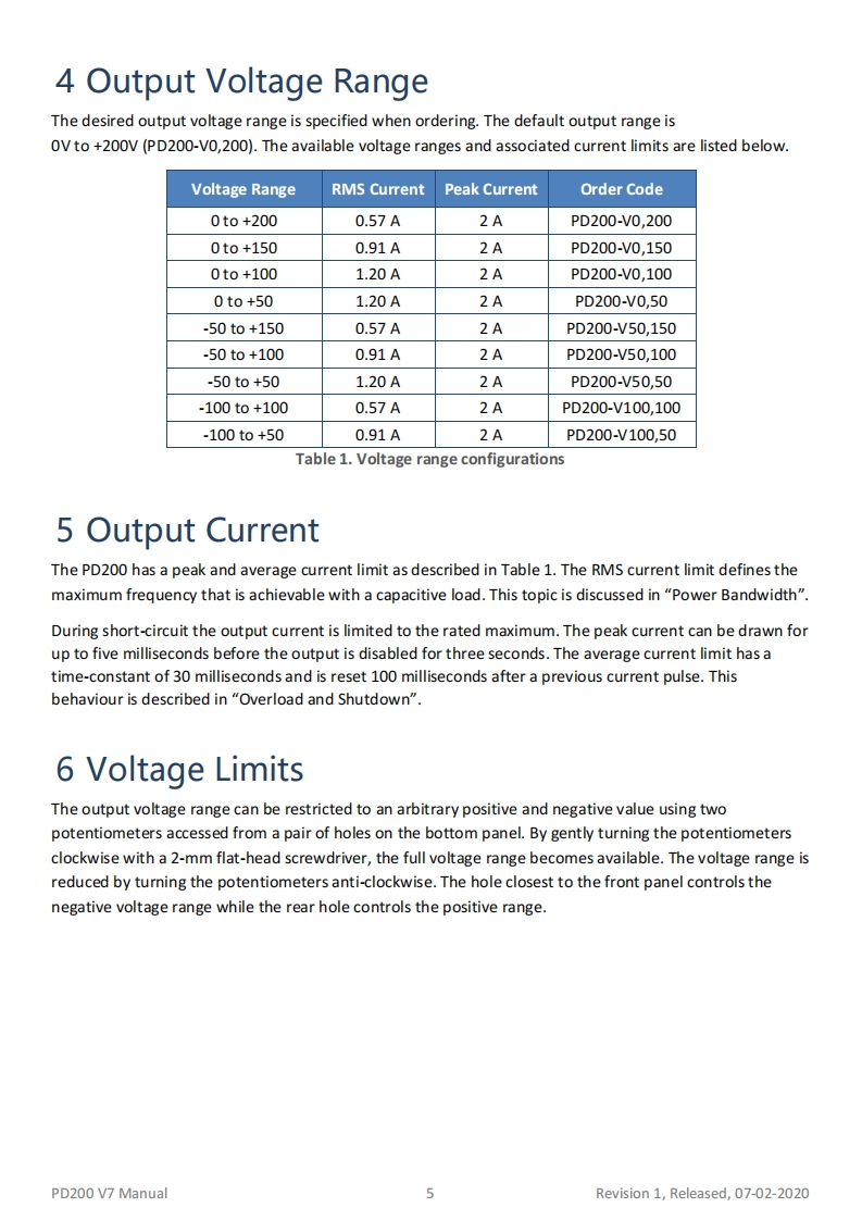 PiezoDrivePiezoDriveDC Output VoltagePD200 Amplifier7吧20AHigh Voltage OutputPD200-Power AmplifierVersion 7Manual and SpecificationsPD200 V7 ManualRevision 1,Released,07-02-2020