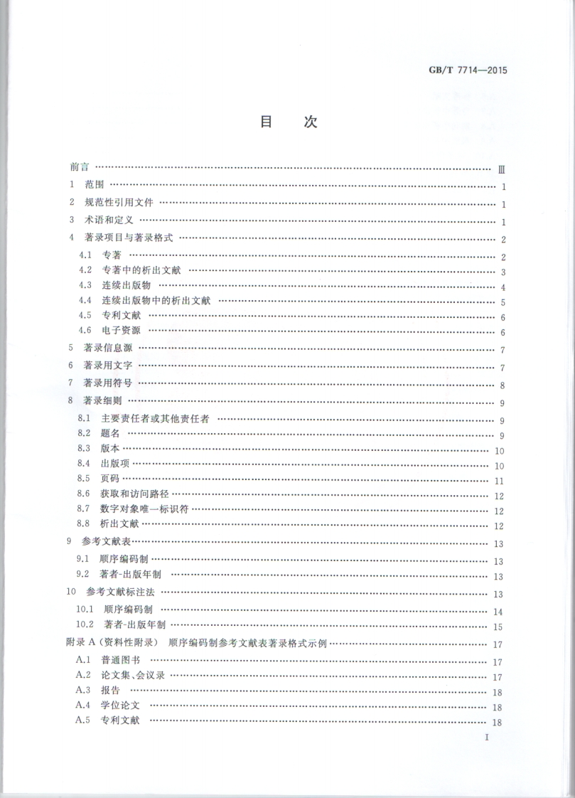 1CS01.140.20A14GB中华人民共和国国家标准GB/T7714-2015代替GB/T7714一2005信息与文献参考文献著录规则Information and documentation-Rules for bibliographic referencesand citations to information resources(ISO 690:2010,Information and documentation-Guidelines forbibliographic references and citations to information resources,NEQ)2015-05-15发布2015-12-01实施中华人民共和国国家质量监督检验检疫总局Φ中国国家标准化管理委员会发布