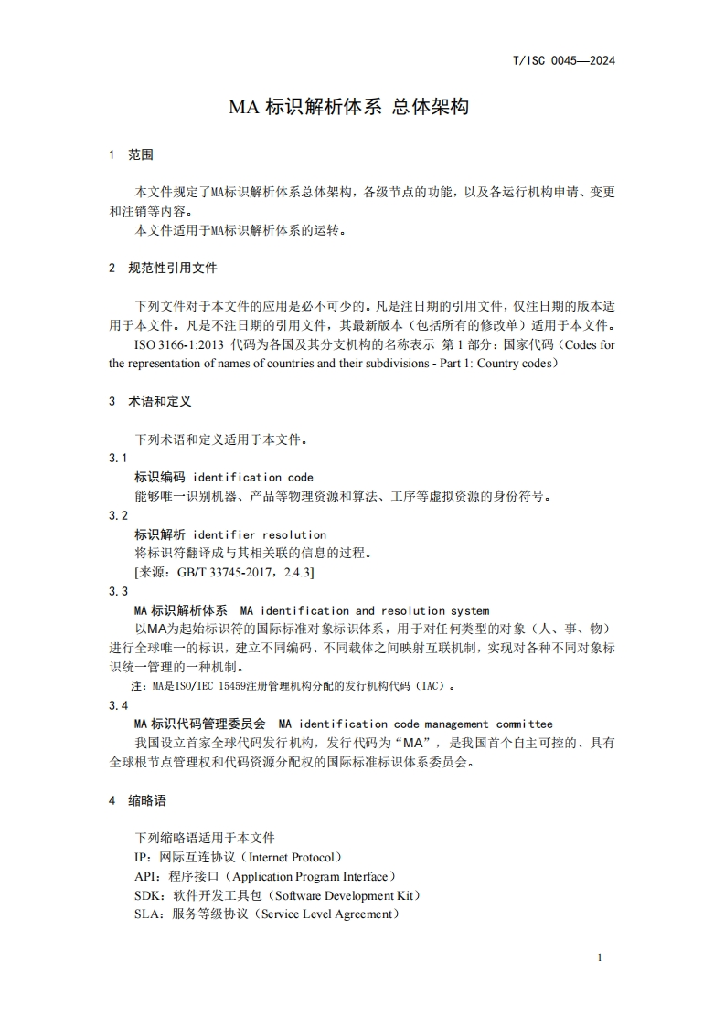 MA标识解析体系总体架构MAidentificationandresolutionsystem-Generalframework348072@abc6天前发布关注私信0.79MB15页020MA标识解析体系总体架构MAidentificationandresolutionsystem-Generalframework此内容为付费资源,请付费后查看¥16¥19黄金会员免费钻石会员免费立即购买您当前未登录!建议登陆后购买,可保存购买订单付费资源 第1页 / 共15页 第2页 / 共15页 第3页 / 共15页 第4页 / 共15页 第5页 / 共15页 试读已结束,还剩10页,您可下载完整版后进行离线阅读 THE END标准规范 文本预览 ICS35.040L71团体标准T/1SC0045-2024MA标识解析体系总体架构MA identification and resolution system -General framework2024-6-12发布2024-7-12实施中国互联网协会发布 查看更多 收起部分 喜欢就支持一下吧收藏