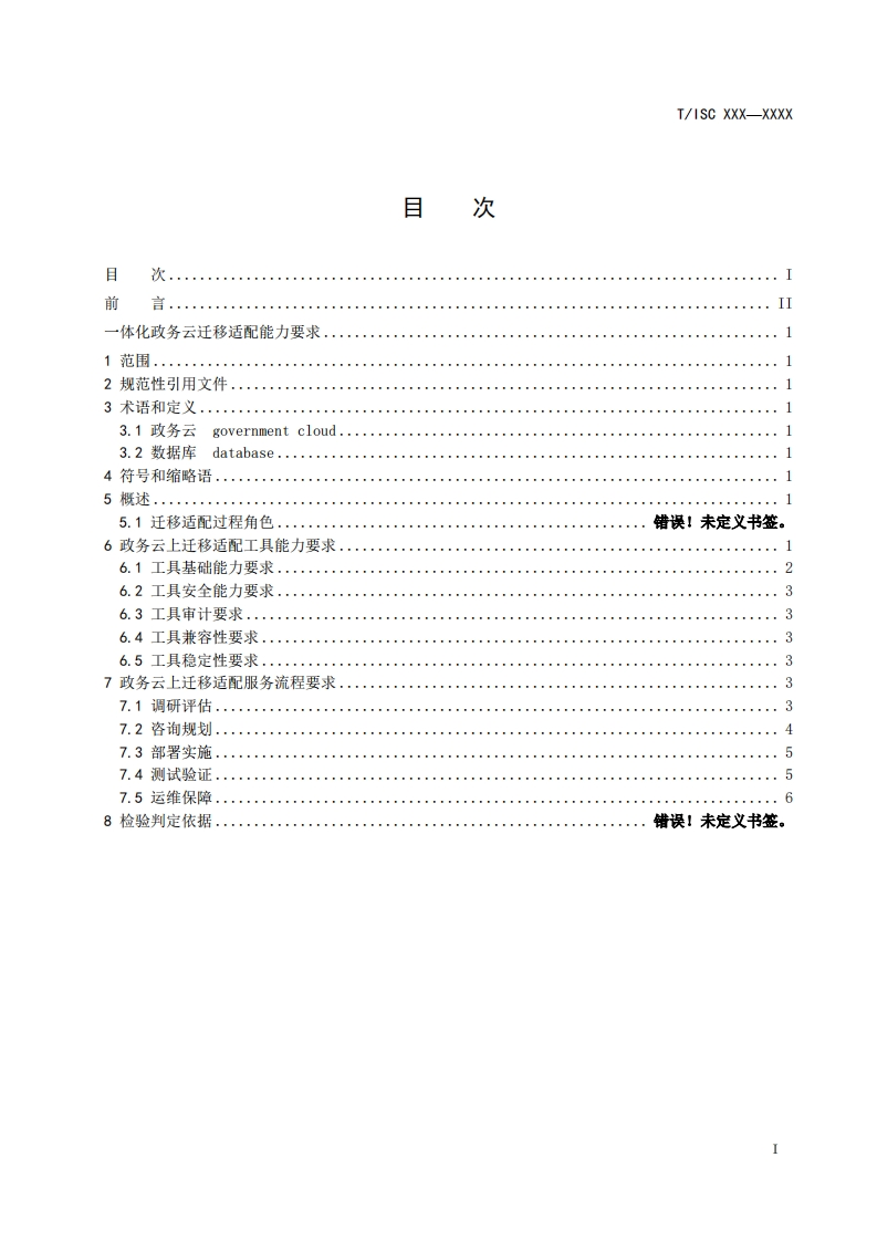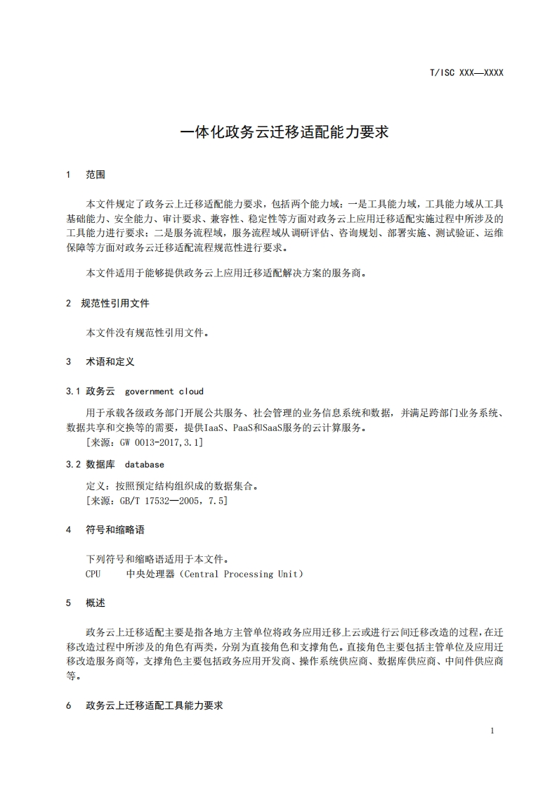 ICS35.240.01CCS L67团体标准T/ISC XXX-XXXX一体化政务云迁移适配能力要求Requirements for Migration and Adaptation Capabilities of Integrated GovernmentCloud在提交反馈意见时,请将您知道的相关专利与支持性文件一并附上。(征求意见稿)2025-11-052025-XX-XX发布2025-XX-X实施中国互联网协会发布