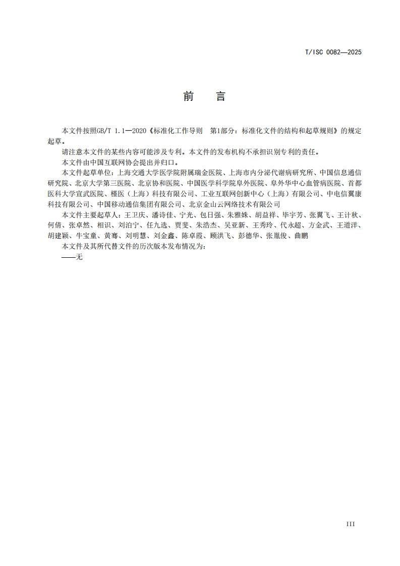 人体能量代谢监测亚台技术要求Technicalrequirementsforhumanenergymetabolismmonitoringplatform在提交反馈意见时,请将您知道的相关专利与支持性文件一并附上。(发布稿)2025-09-18348072@abc5天前发布关注私信0.61MB22页028人体能量代谢监测亚台技术要求Technicalrequirementsforhumanenergymetabolismmonitoringplatform在提交反馈意见时,请将您知道的相关专利与支持性文件一并附上。(发布稿)2025-09-18此内容为付费资源,请付费后查看¥16¥19黄金会员免费钻石会员免费立即购买您当前未登录!建议登陆后购买,可保存购买订单付费资源 第1页 / 共22页 第2页 / 共22页 第3页 / 共22页 第4页 / 共22页 第5页 / 共22页 试读已结束,还剩17页,您可下载完整版后进行离线阅读 THE END标准规范 文本预览 ICS35.020CCS L70团体标准T/ISC0082-2025人体能量代谢监测平台技术要求Technical requirements for human energy metabolism monitoring platform在提交反馈意见时,请将您知道的相关专利与支持性文件一并附上。(发布稿)2025-09-182025-09-18发布2025-10-18实施中国互联网协会发布 查看更多 收起部分 喜欢就支持一下吧收藏